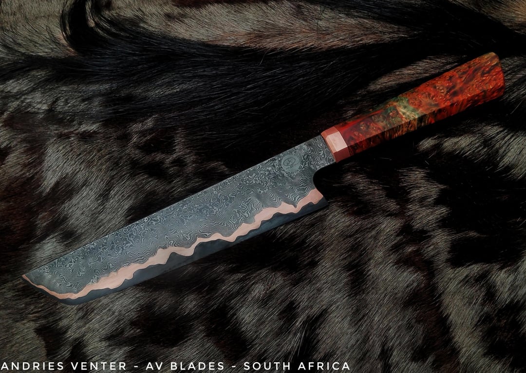Looks beautiful but for a kitchen knife I’m not sure how useful the “tanto” tip will be.