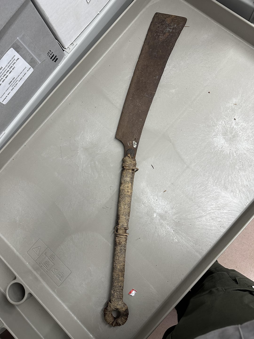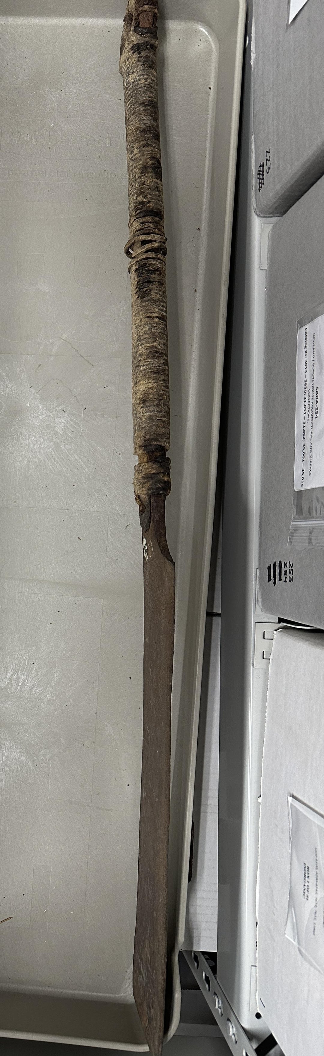 I’m hoping anyone can tell me anything about this. I think it’s an old big ass butcher knife. But what kind of butchering would have been done with it? For scale, it’s about 30” long overall, blade a little less than half that length. The handle is wrapped in rope of some sort.