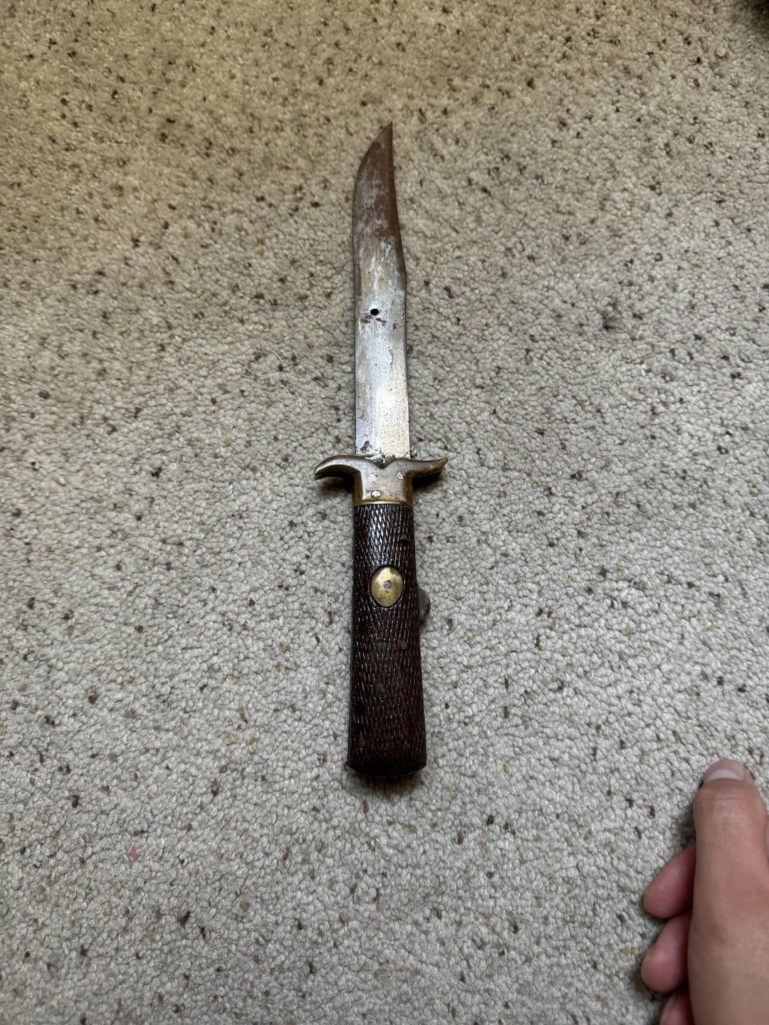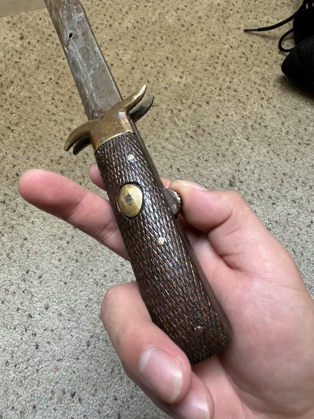 In KNIVES What kind of dagger is this I found this a while ago, could it be homemade or maybe a WW2 dagger? August 27, 2024 What kind of dagger is this I found this a while ago, could it be homemade or maybe a WW2 dagger? by Got-away KnifeKnife ClubKnives Prev Post New EDC model in stainless damascus laminate August 27, 2024 Next Post My first attempt making a leather wallet and sleeve for car keys August 27, 2024 Related Posts Grail of Grails January 16, 2026 NKD x2! January 16, 2026 SOTC January 16, 2026 1 Comment cycle_addict_ 1 year ago https://stcroixblades.com/shop/products/1800s-antique-english-folding-swing-guard-bowie-knife-dirk-old-collection/Similar design. Yours might be newer. It’s certainly OLD and interestingWrite A CommentYou must be logged in to post a comment.