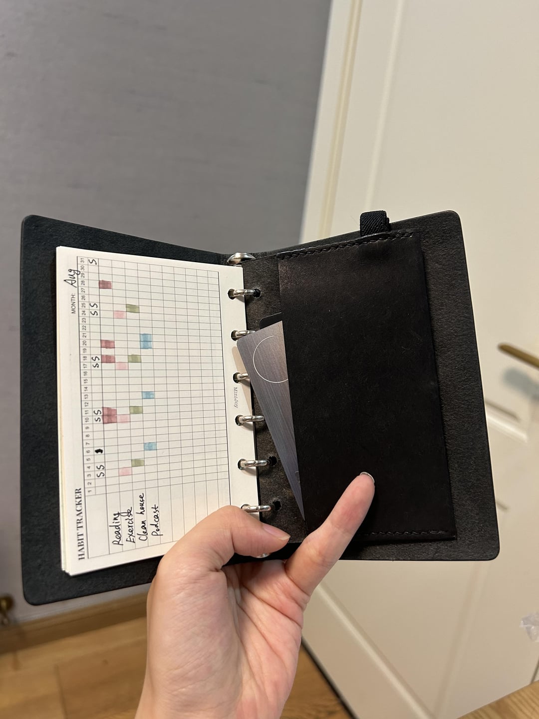 I bought an A8 Slimpad from mee-plus.com to use as my wallet+notebook+pen system.