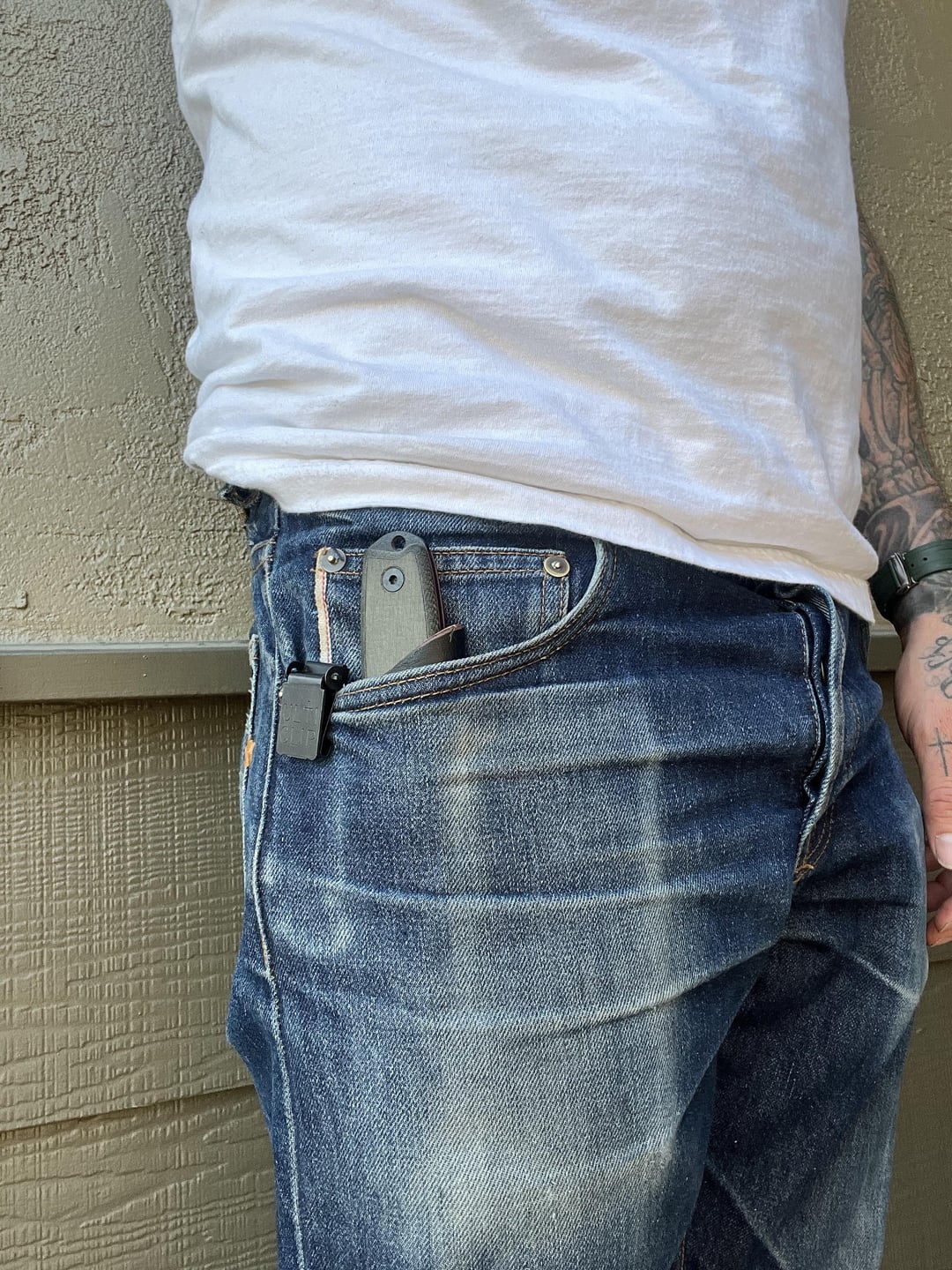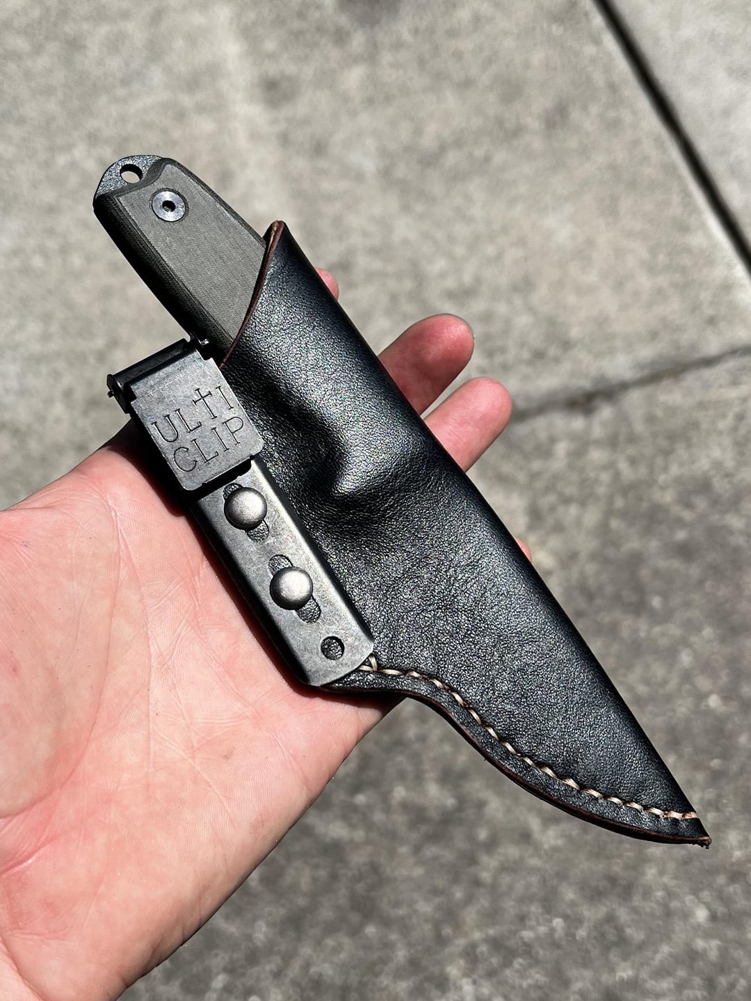 Decided to try and make a prototype inside the pocket sheath for this ESSE today, ended up coming out nice enough to just use. I wanted to buy a Bradford sheepsfoot, wasn’t sure how I would like ISP a fixed blade and then remembered I had this knife. Dug through scraps and found some wet hardening veg tan that I covered in shinki horsehide. Had a spare ulti clip and badabing. I already have some tweaks in mind for the next one, this knife is a little big so I’ll probably get that Bradford guardian and make an even more streamlined sheath for it. Thanks for looking!