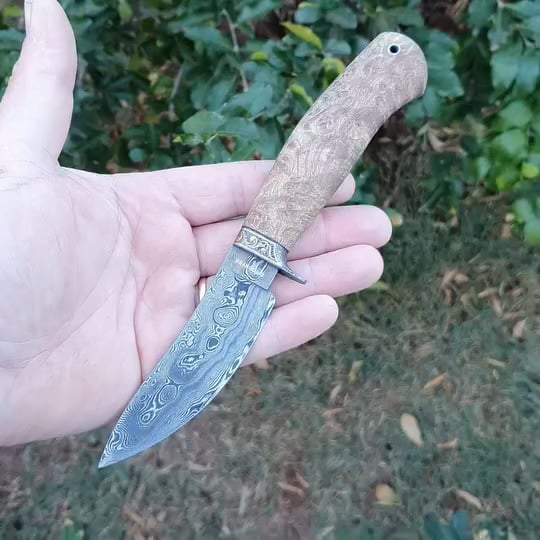 Franco MS “Breeze”, Damascus, 3.75 inch blade, oak burl handle.
