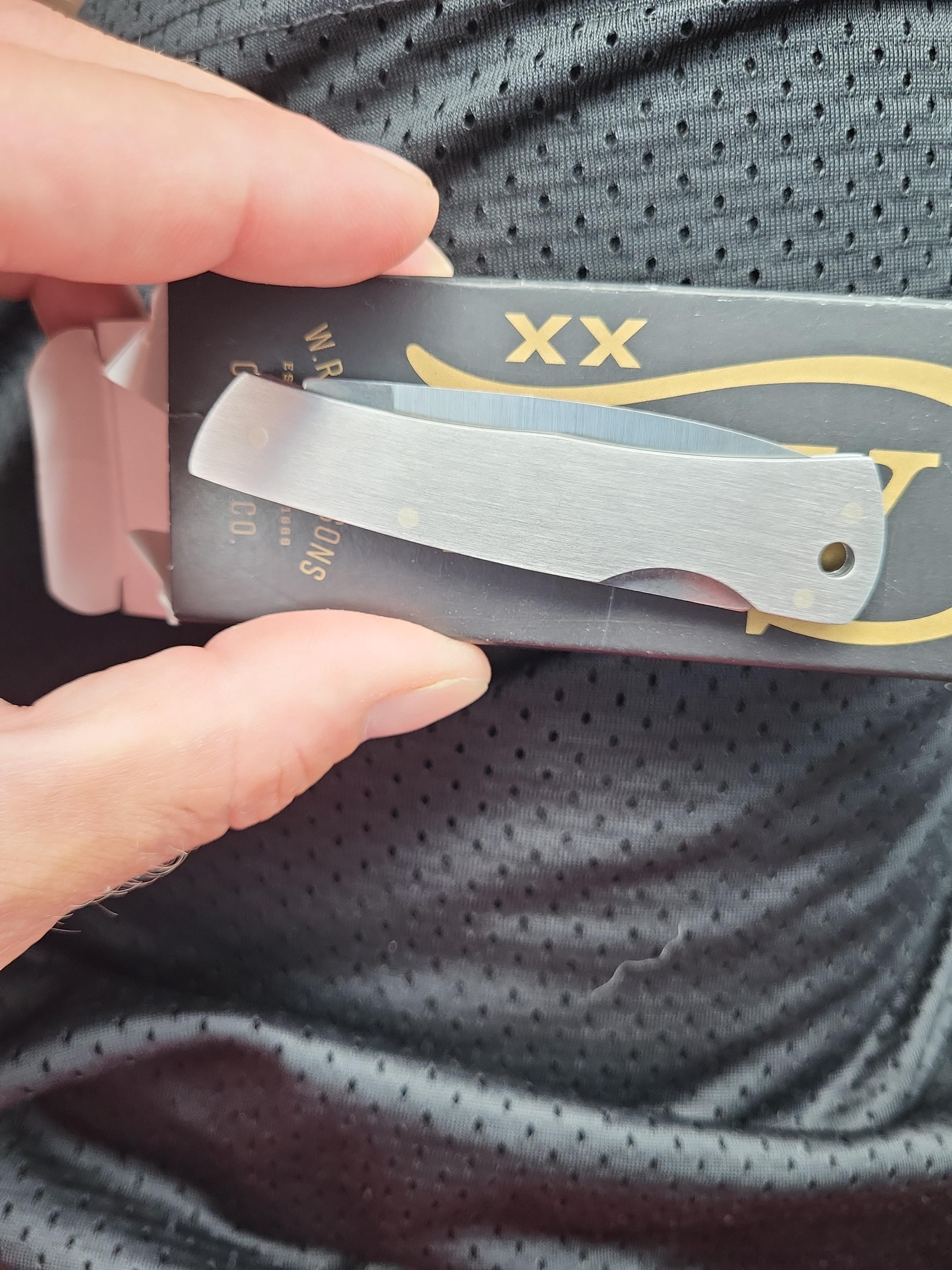 Got this knife on clearance for only $9, was 45$! Fell off my lap getting out of the car onto the concrete and put a ding in the corner. Well sanding it out cause any rust in the future? It says it’s stainless steel so I feel like this is a silly question but I don’t know if that’s only the blade. I have some very fine sand paper up 2000 grit. Gonna give it to my nephew for his 8th birthday engraved “Fishing Buddies”