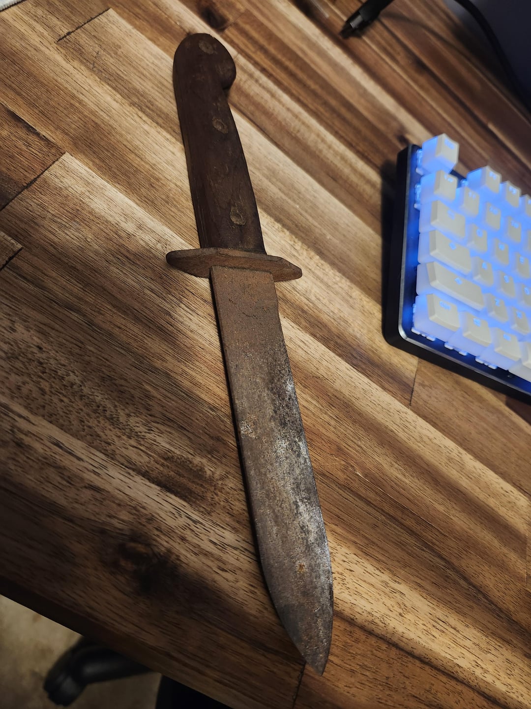 I do know it’s Australian, and it’s my stepfathers grandfather’s knife. My stepfather found ot in a box of his old things, and asked if I want it. You don’t turn down something this interesting so I’m looking for info before I use a rust remover, sharpen it and make a sheath. To I just oil it and put and edge on it? I’m sure in this condition if it was something of interest, it has zero value to anyone now. Stepfather was going to throw it away, and my grandfather’s ww2 British infantry knife after I cleaned, and put an edge on it was example enough that she could be beautiful again. What you got boys?