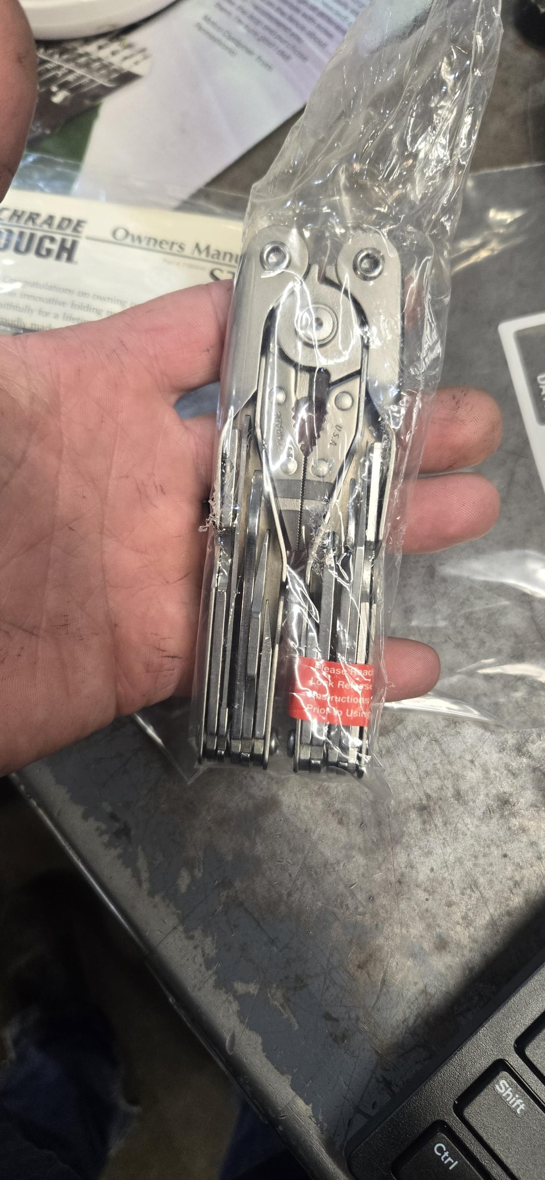 A guy at work brought it to my because I’m the Knife guy and he thought I might know about it. I’ve no idea. I’ve got my Wave+ that I cheerfully abuse every day of the week but that’s all I know as far multitools go. He’s cleaning out his 80 plus year old dad’s house and he was apparently the type of person to buy shit like this and never use it. I got a few older USA made Remington folders from him and a Schrade folder still in the package from the 90’s which is pretty cool.