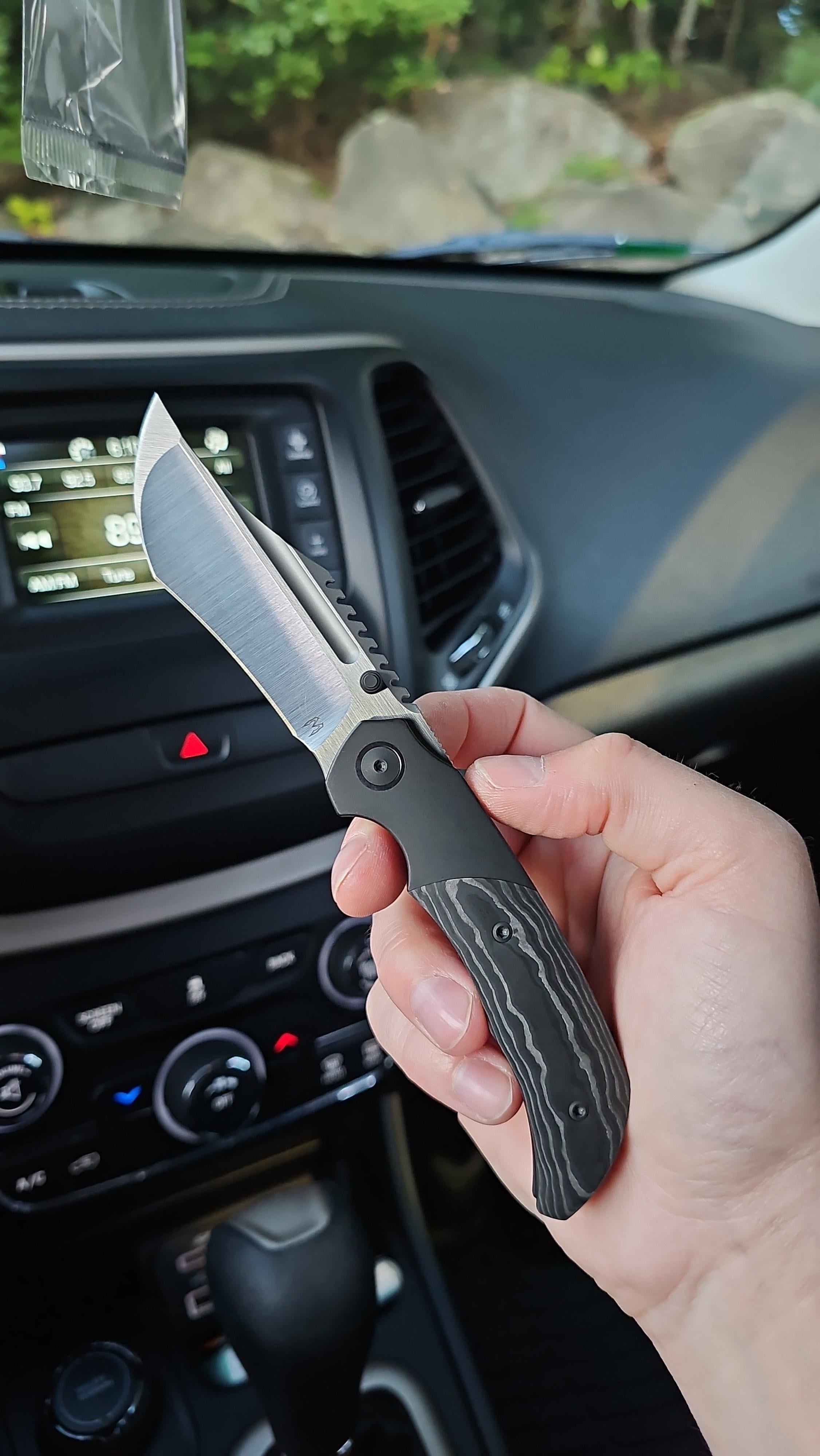 Merriken Mini Ultimatum in Magnacut. Black pvd and reverse fat carbon. My 1st bolster lock, really like it so far. Gotta say I’m really digging this one so far. Glad I managed to pick one up from his 2nd production run. Was torn between this or the Efros Elder, availability made the decision for me.