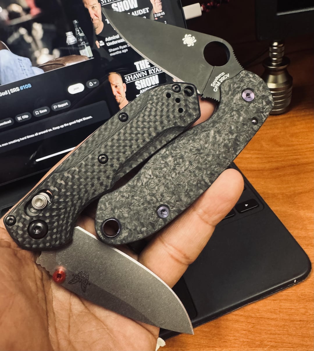 Feeling like CF today! These are up there in terms of my top, practical edc folders. Whats your opinion on this very subjective topic? What are the best (PRACTICAL) edc folders out there? (L) Benchmade Mini Freek (R) Spyderco Para 3