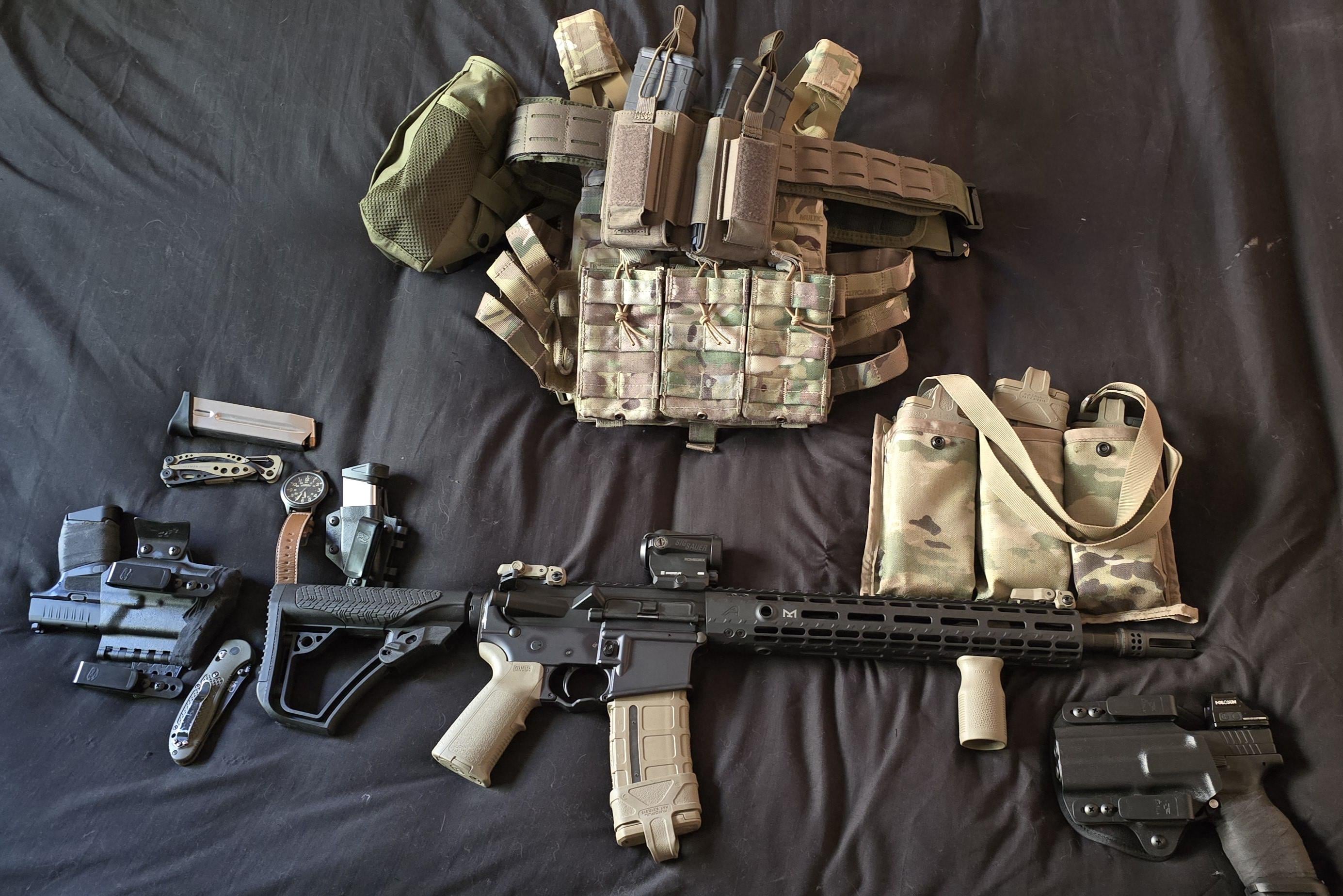 Crye PC Poverty Pony Lower on an Aero 14.5 p&w upper XD9 Hellcat Micro Bear Creek battle belt Leatherman Skeletool Benchmade Griptilian Mag satchel T-Rex Sidecar