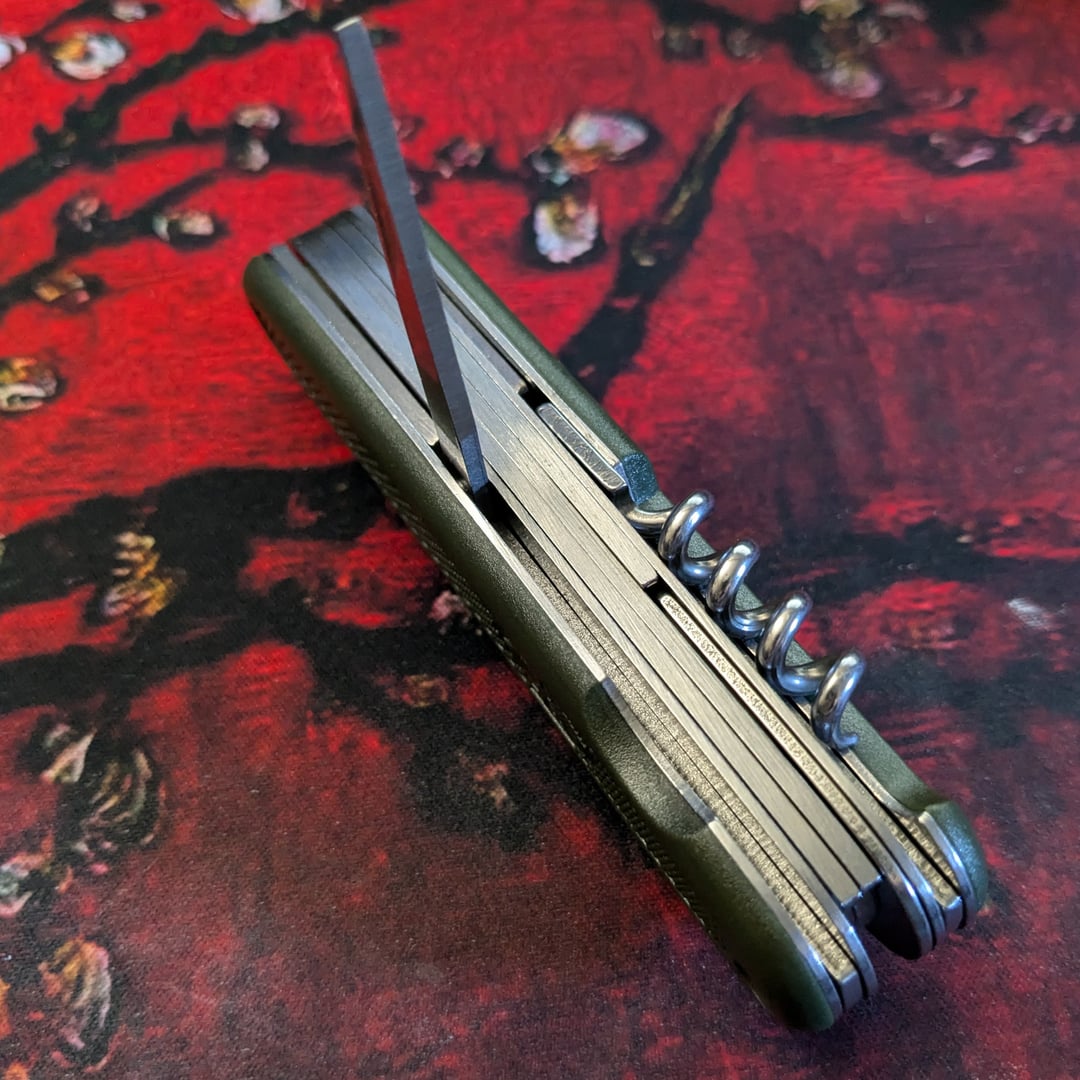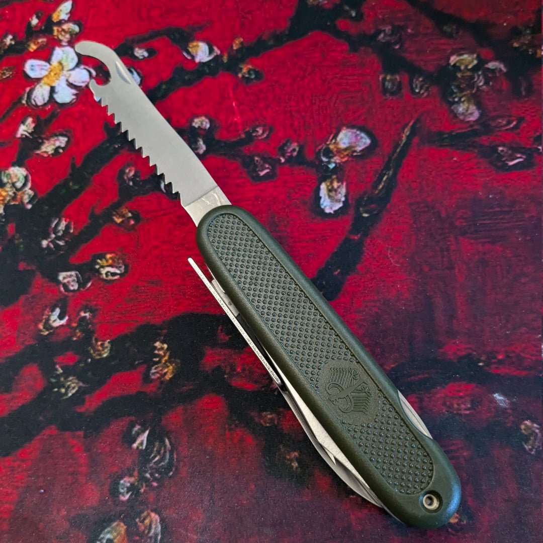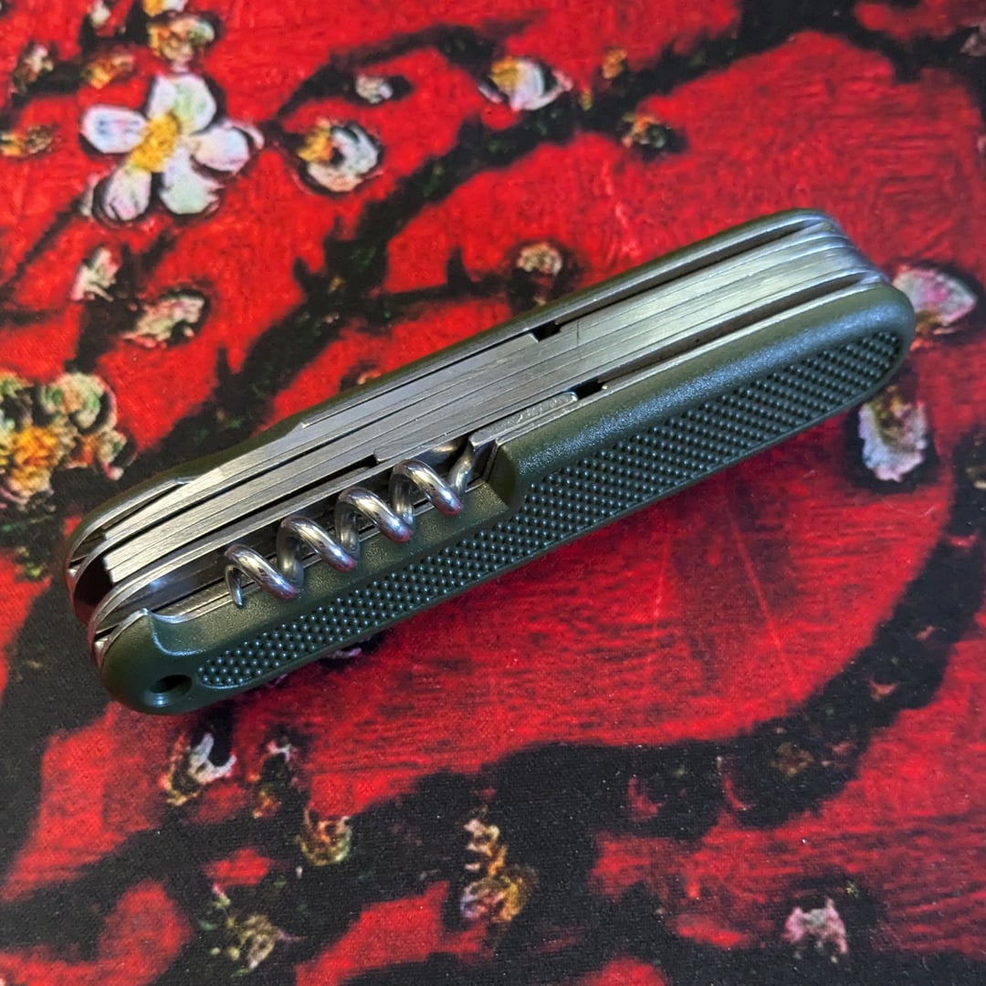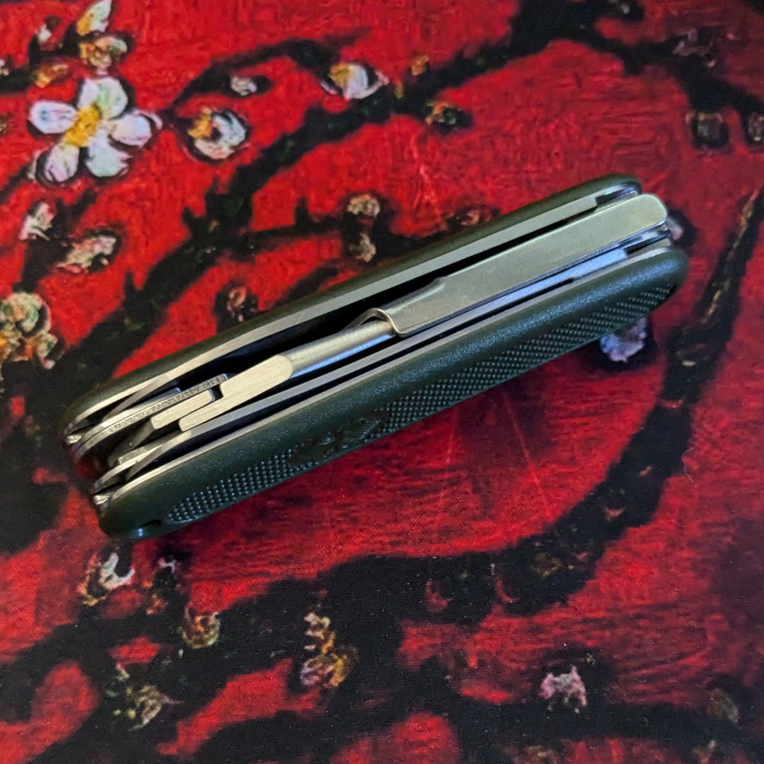 * General: Very good / Impressed / Will Do Just Fine. All tools are normal-easy to open and close. * Appearance & feel: Nice to look at, feels good in the hand. I love the feel of the scale texture on these. * Pliers / Cutters: Seem very capable / Untested. * Main spearpoint blade: Very sharp out of the box. * Saw / cap lifter / driver tool: Very sharp. Did not come with a tin cover. Does not have a nail file / striker. * Punch / Reamer: OK. But not edged or pointed! (You can see this in the photos) This is interesting. I might mod it. As it is, it can probably punch through leather OK. * Corkscrew: Just fine, nice and meaty. Better than the old Imperial corkscrew on the [Timberline](https://www.reddit.com/r/EDC/comments/137xsja/vintage_surf_mix/). You can see it no longer takes the full space though, unlike the other GAK-108s, which have a (very) long corkscrew. So I wonder if this is a recent change to the design.