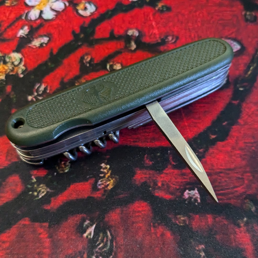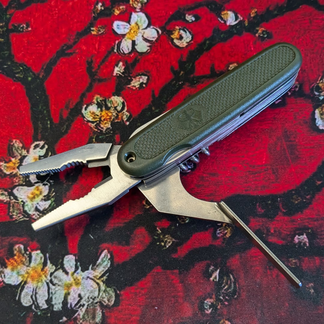 This is known as the “Mil-Tec Bundeswehr Army 4” because, I’m told, it has 4 tools. But I’m not sure which ones they are! I see at least 7 tools.