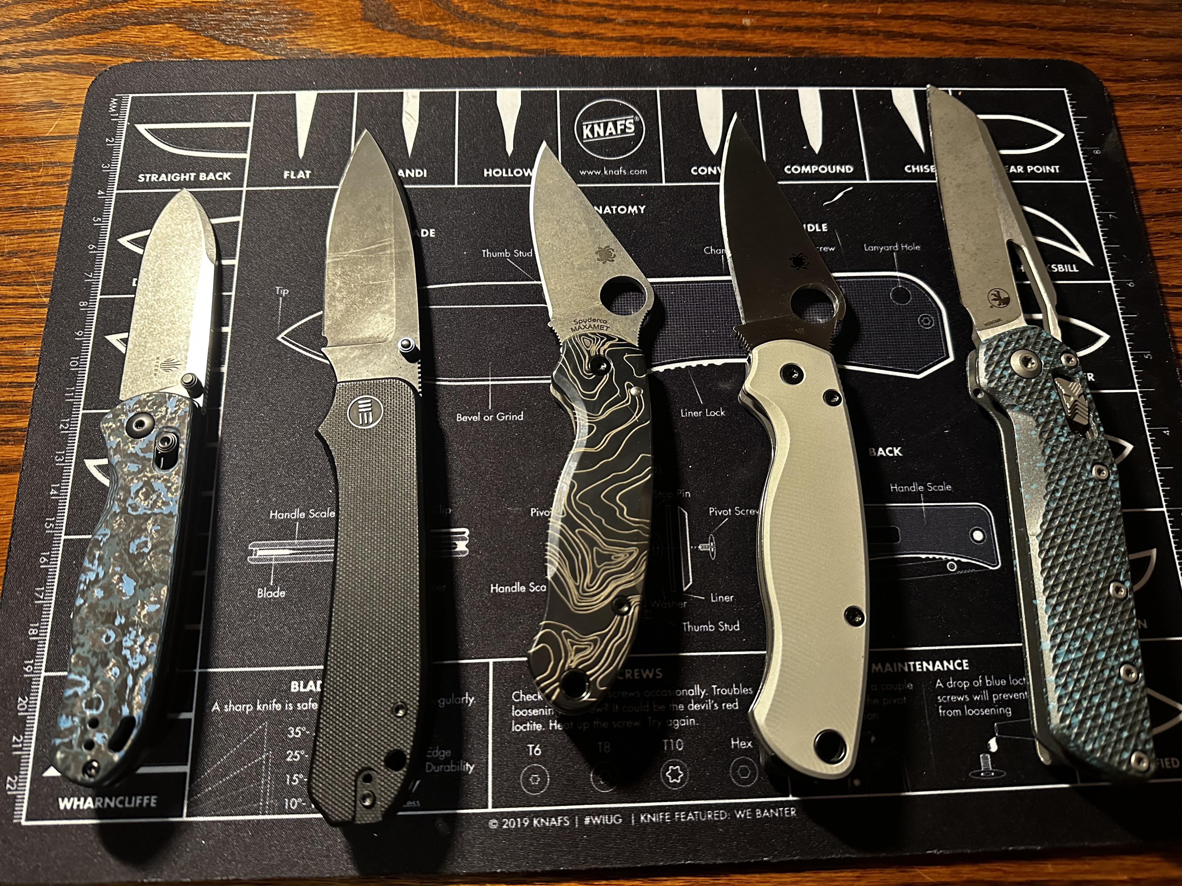 In KNIVES Weekly Knife rotation September 5, 2024 Blade steels left to right – Elmax – 20CV – Maxamet – CruWear- M390Most favorite- Tie between Big Banter & PM2 Least favorite PM3by Winter_Juggernaut617 KnifeKnife ClubKnives Prev Post This bad boy just came in! September 5, 2024 Next Post New custom from another user September 5, 2024 Related Posts How do I take care of my dad’s old lb7? January 17, 2026 My humble collection January 17, 2026 My new hogue deka and Microtech Socom Bravo Mini. Thoughts about these two knives?? January 17, 2026Write A CommentYou must be logged in to post a comment.