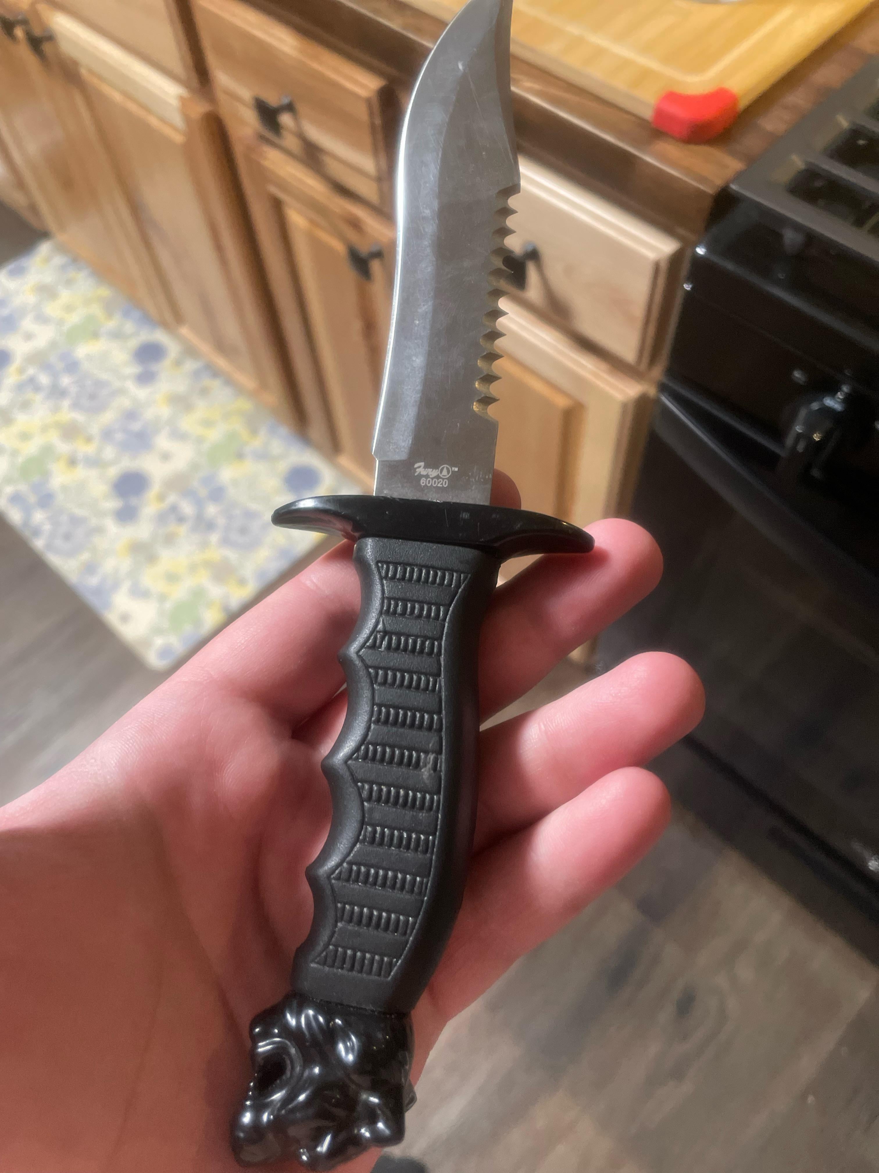 In KNIVES Does anyone recognize this sweet mallninja piece? Can’t read the font, thought it said “Fang” but it comes up with no results. September 5, 2024 Does anyone recognize this sweet mallninja piece? Can’t read the font, thought it said “Fang” but it comes up with no results.by StankyDinker KnifeKnives Prev Post EDC for GMP September 5, 2024 Next Post Stock v Bob September 5, 2024 Related Posts Microtech value January 17, 2026 Collection January 17, 2026 What is the value of this one January 17, 2026 5 Comments itisallopinions 1 year ago It’s Fury cycle_addict_ 1 year ago FURY. Google that and the numbers. 7jamm 1 year ago [eBay](https://www.ebay.com/itm/326256537757?mkcid=16&mkevt=1&mkrid=711-127632-2357-0&ssspo=9CzcgqCgROq&sssrc=4429486&ssuid=luq5bqlaqje&var=&widget_ver=artemis&media=COPY) Nanabas 1 year ago Oh my GOD I had this exact knife as a kid. This brings back a lot of memories. Panda_Pants87 1 year ago I had the Muela brand version of this, didn’t have the lion head on the end, but everything else was exactly the same.Write A CommentYou must be logged in to post a comment.