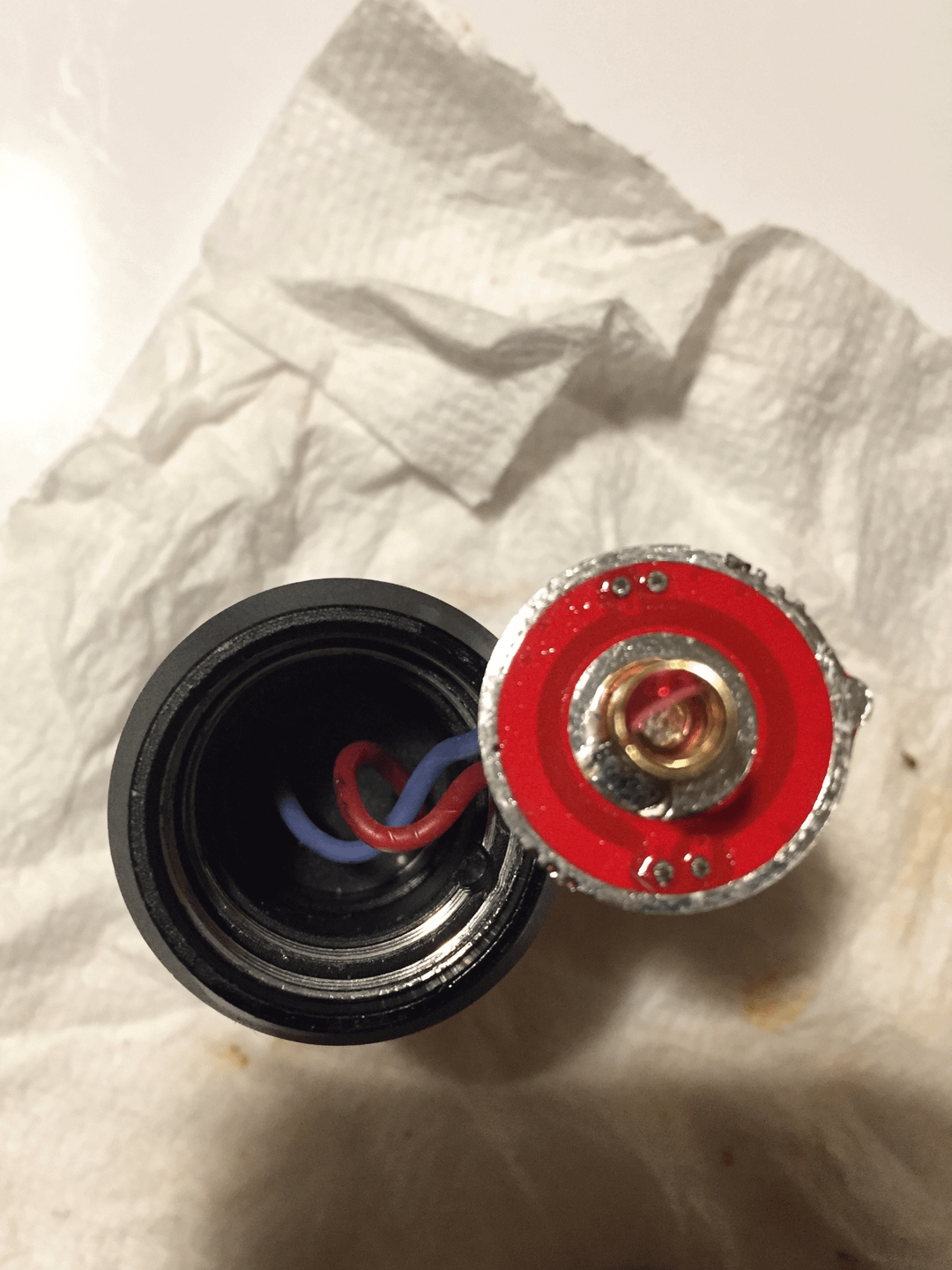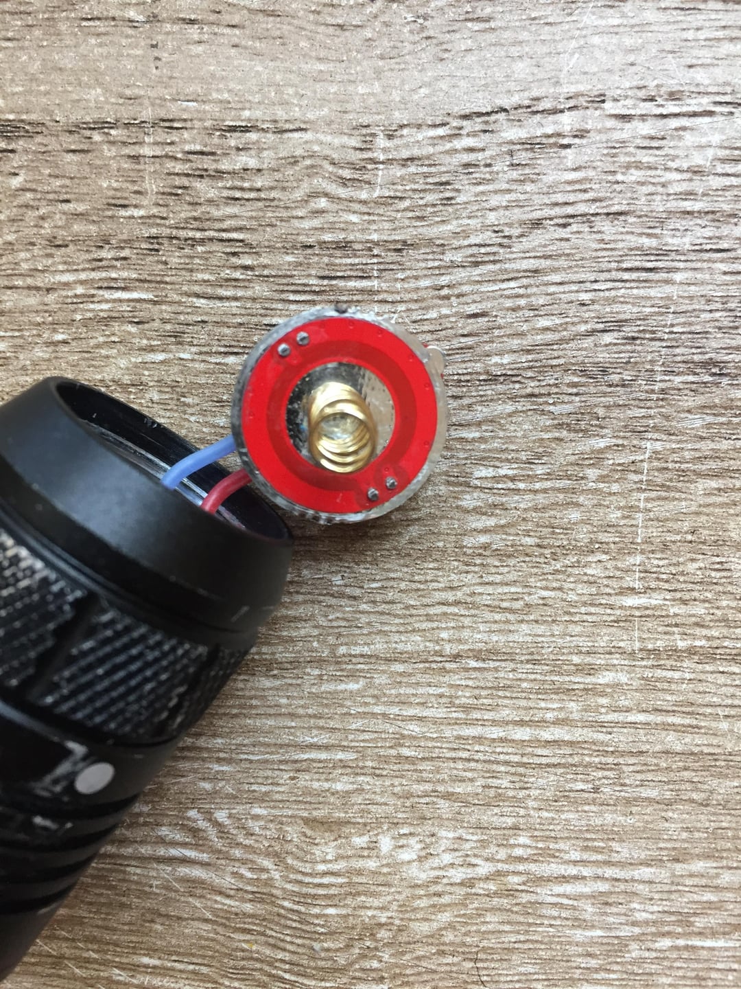 My flashlight keeps flickering so I’m cleaning all the contact points with deoxit. I believe this part isnt making proper contact with ground as i need to keep smaking the flashlight to stop flickering. Im not sure what part is supposed to make contact with ground so i can make adjustments to the flashlight, can anyone help me out?