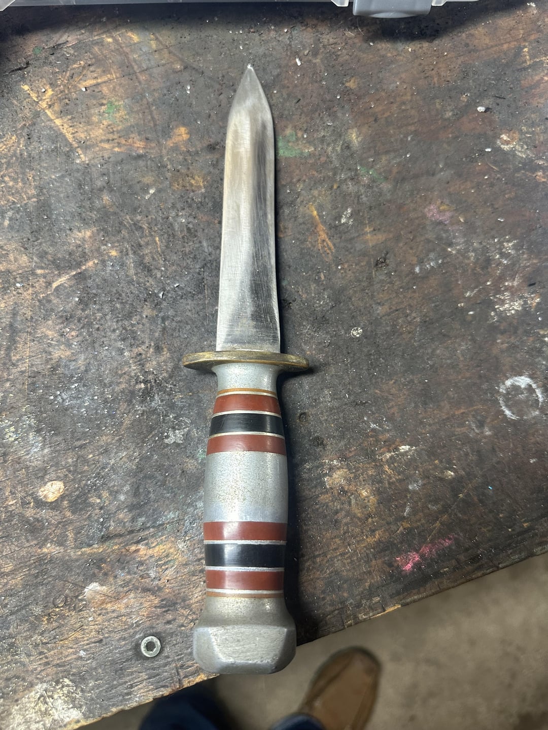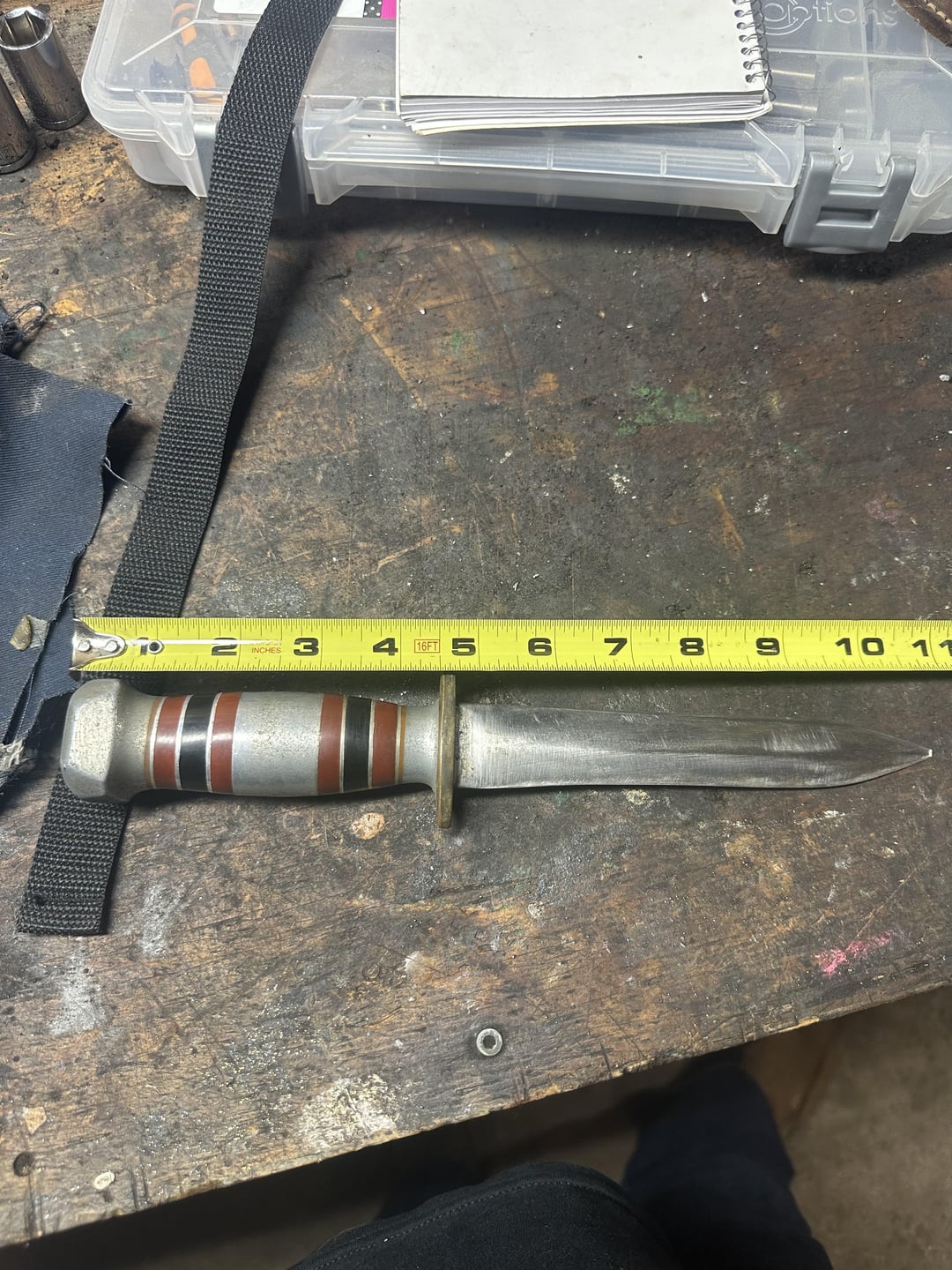 It is a pretty cool knife. it no longer has an edge on either side and the tip has a burr. It is very heavy and well made. i’m assuming it wasn’t the tool and die makers first knife. This is a cool knife with a good back story.