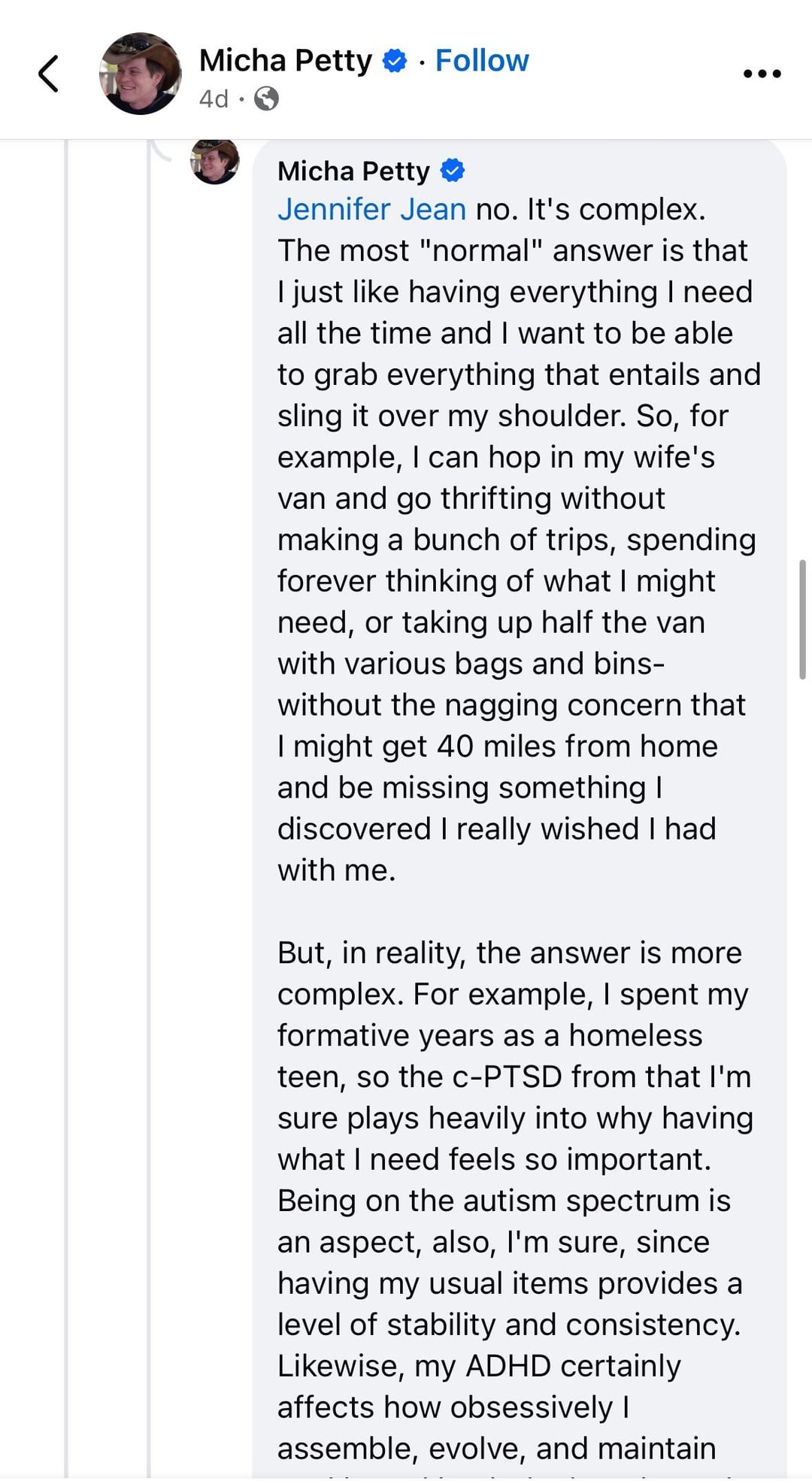 This is not my post, but a list of what he claims to carry is included in the images. It is expansive.