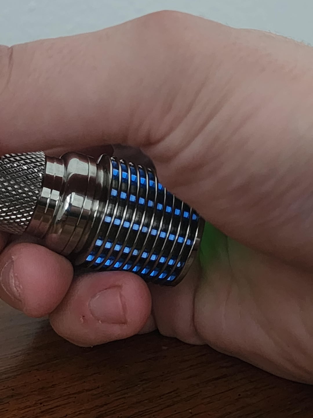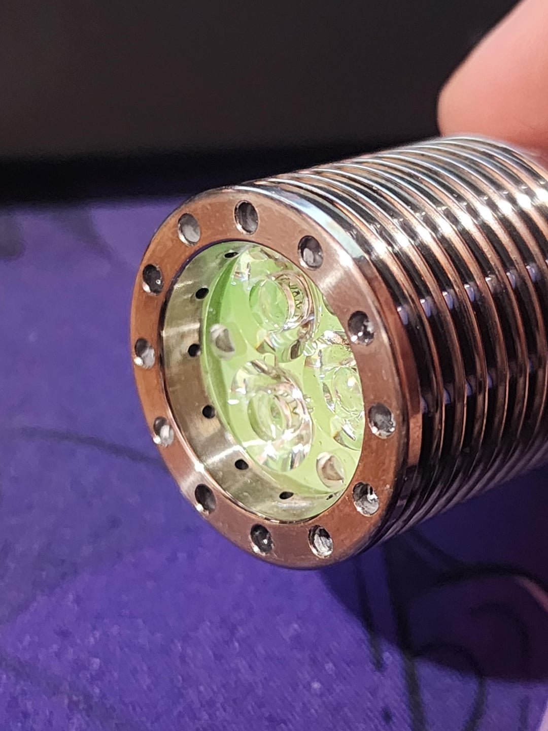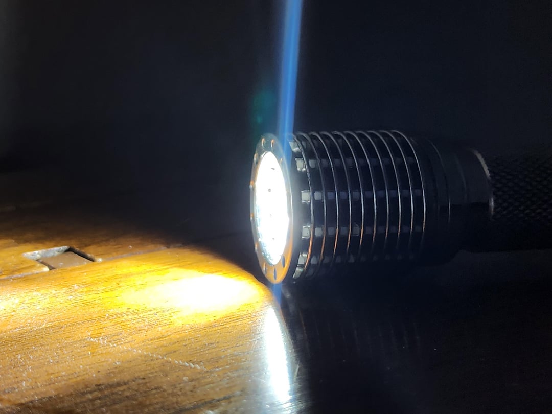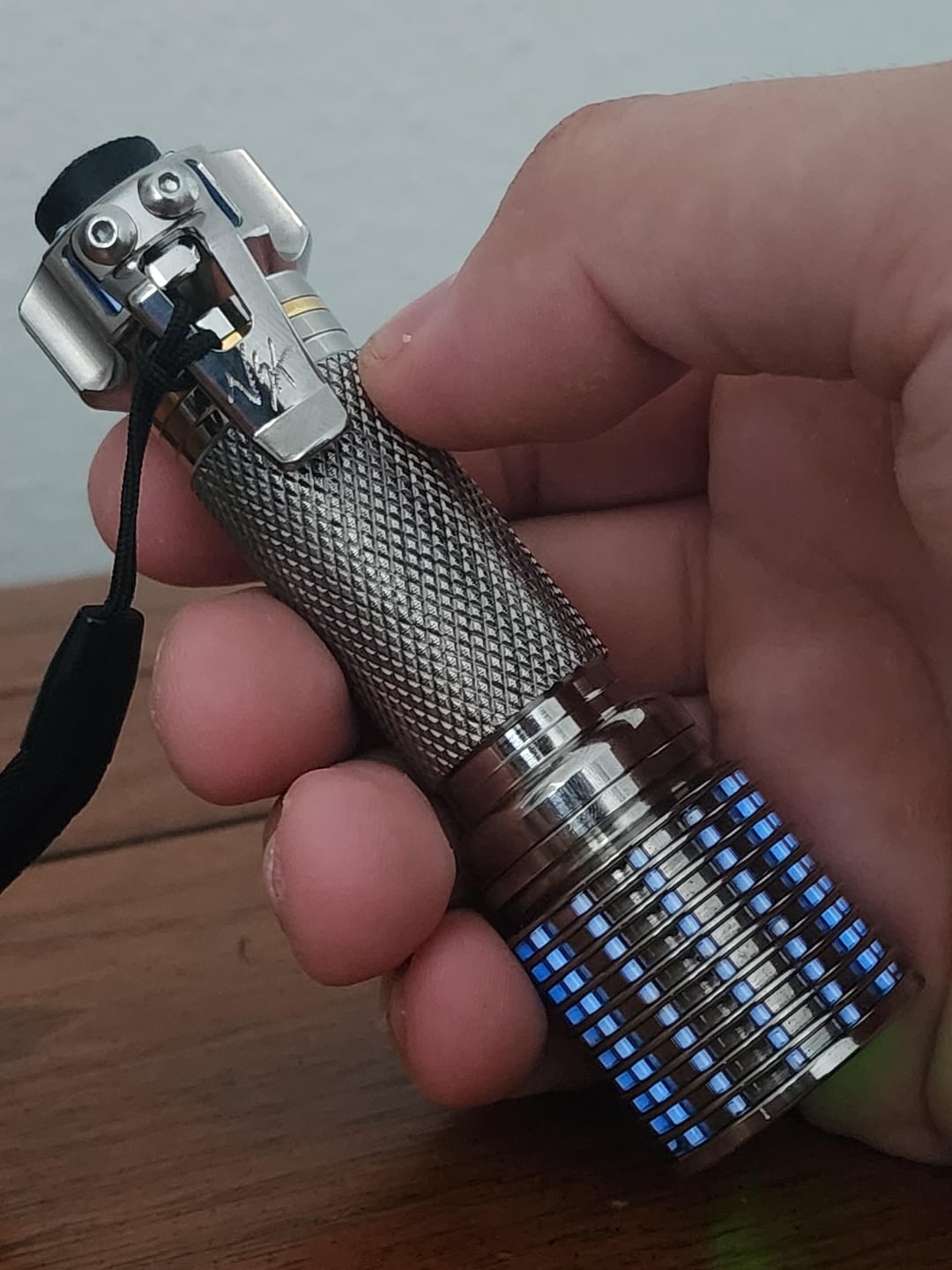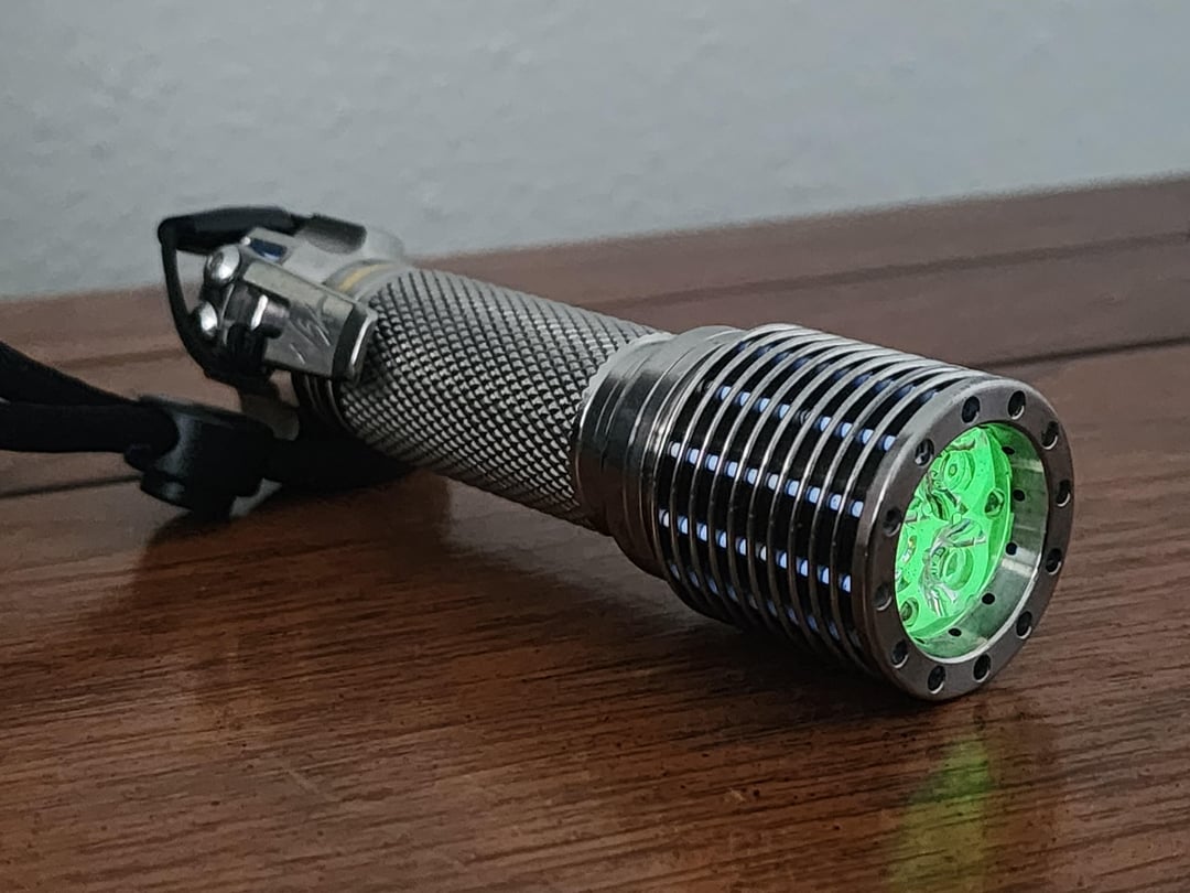 Hello y’all, been a while. For my bday I decided to spoil myself and buy two custom flashlights, this being the first. This is a one-off made by Vinh (link to specs in the comments). Obviously I love the sheer amount of trits, but the whole host in general is beautiful. It appears it’s using the 17mm DriverVN4 in a pill, however there is a little wiggle room for the driver. Unfortunately the driver is glued in, and the mcpcb is solder-bonded, so any modification of pill would most likely need to redo the entire pill. For me personally, I find the lack of low volt protection provided by the DriverVN4 concerning, so I might try and swap the driver to a dr jones or a dragon driver in the future. But for now, I’m really digging the light. I’m generally not a huge fan of cool-white emitters, but these 6500k SFT25R’s are pretty. I’m not exactly sure why, but the beam has the spill shaped kind of like a rotor from a rotary engine. I’ll take beamshots later tonight when it gets dark 🙂