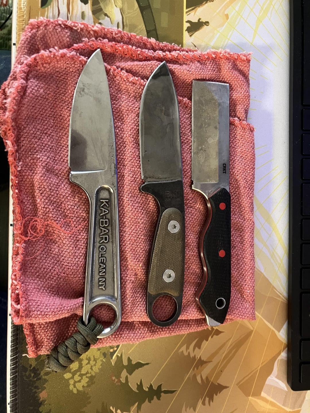 Looking for leather sheath that would work for a 3” fixed blade, pictured I have the CRKT Razel, ESEE KA BAR ESKABAR, KA BAR Wrench Knife. Thinking about the ariat sheath in slide two but any recommendations are appreciated!