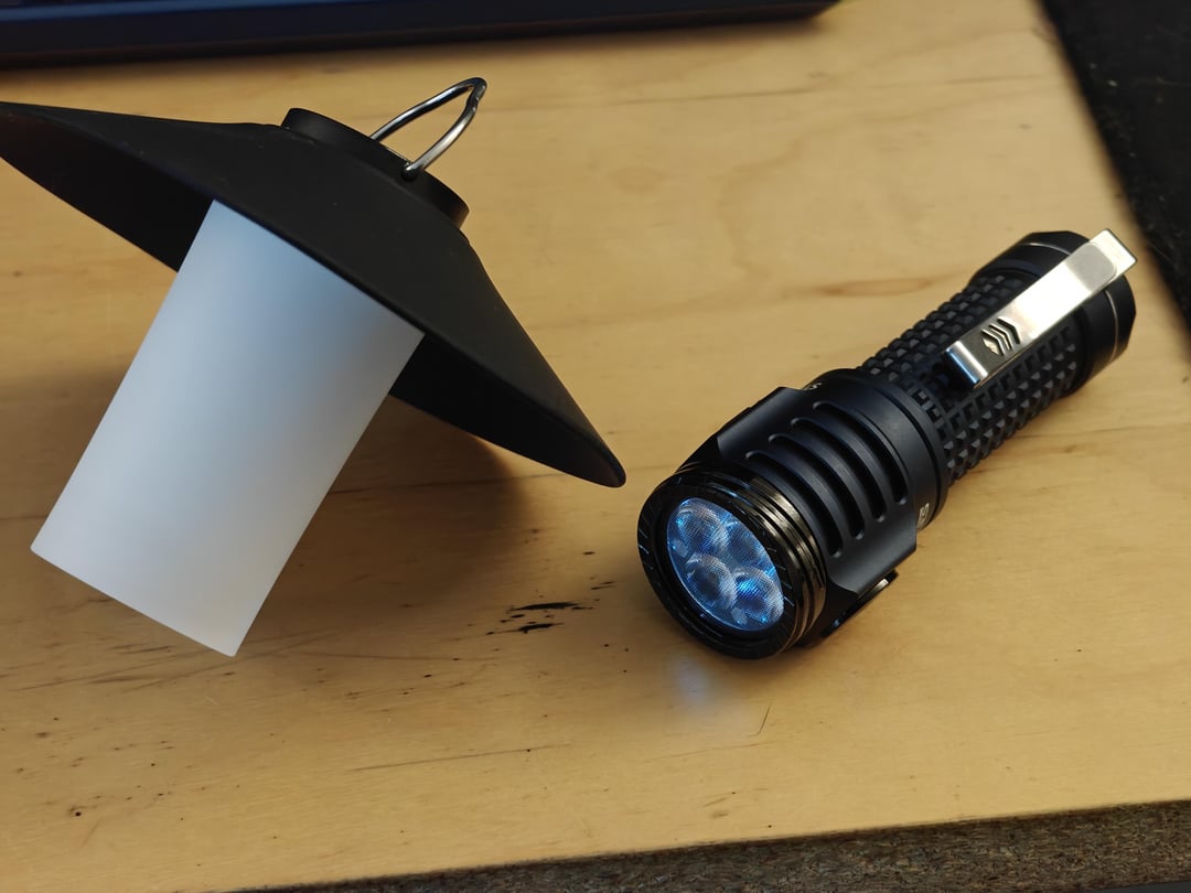 Sofirn Q8 Plus: 5000K, XHP50.2, 3×21700. Also very useful, a bit simpler design used and a tad bigger, but more light and runtime. I accidentally bought this when I wanted the Pro, so I emailed Sofirn and they sent me a code for half of off the other one. So now I got two.