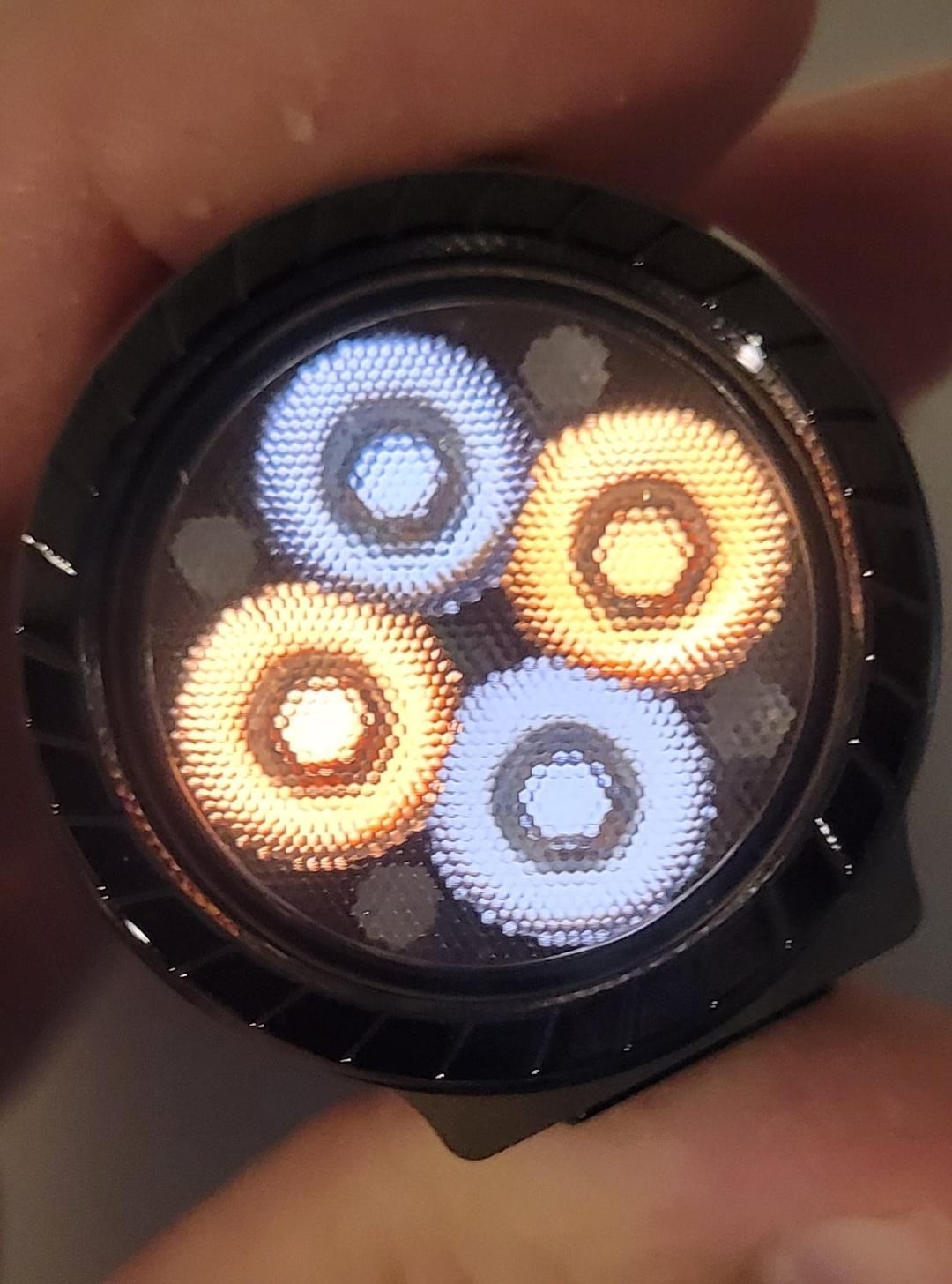 I ordered a FFL351A mix of 1800k and 4000k rosy and the beam is gorgeous. I like this light overall but I have one little nitpick with the charge cover because it sticks out unevenly. I know I’m picky and it’s not a huge deal but I can feel it so it bugs me a little bit.