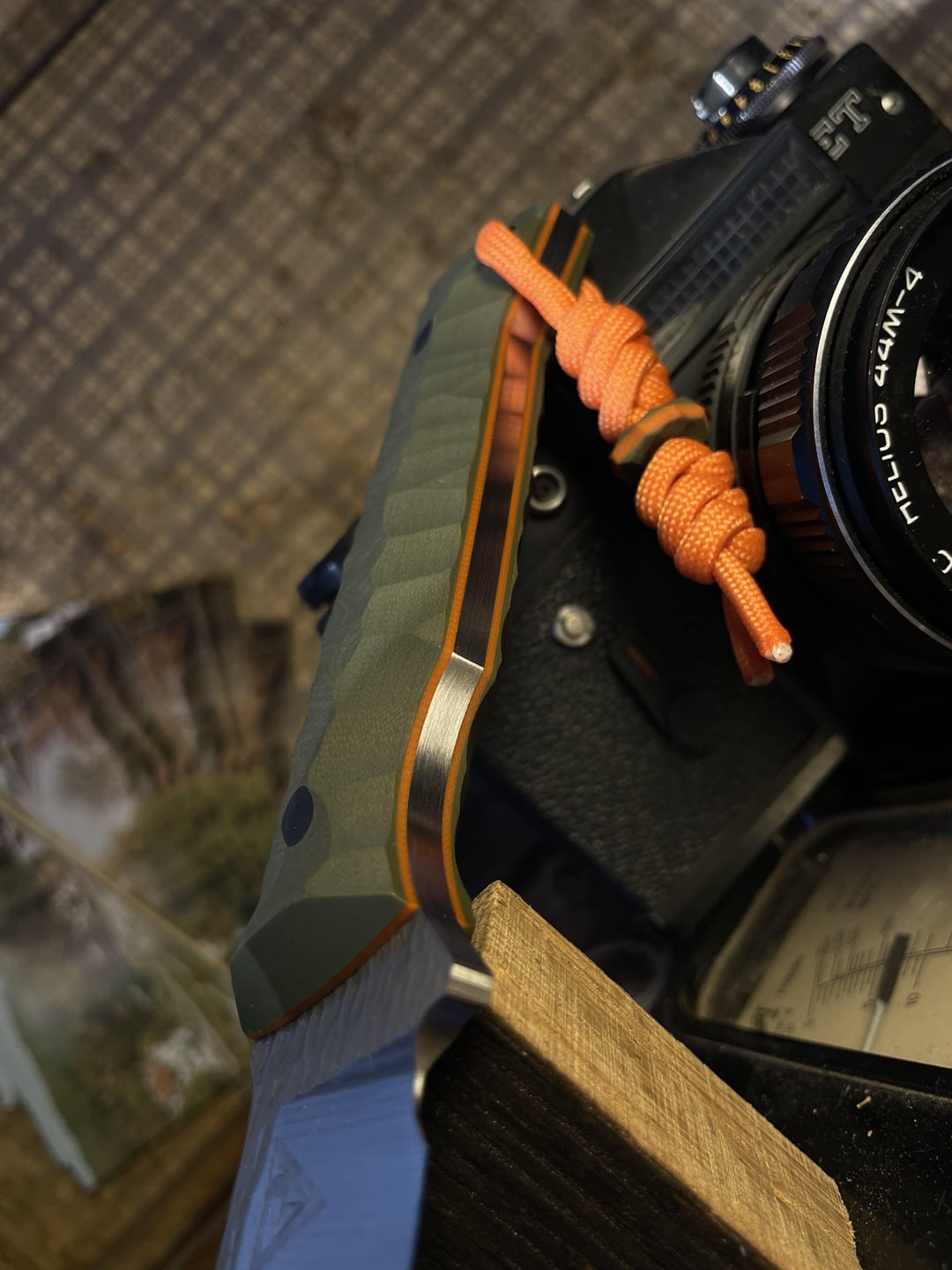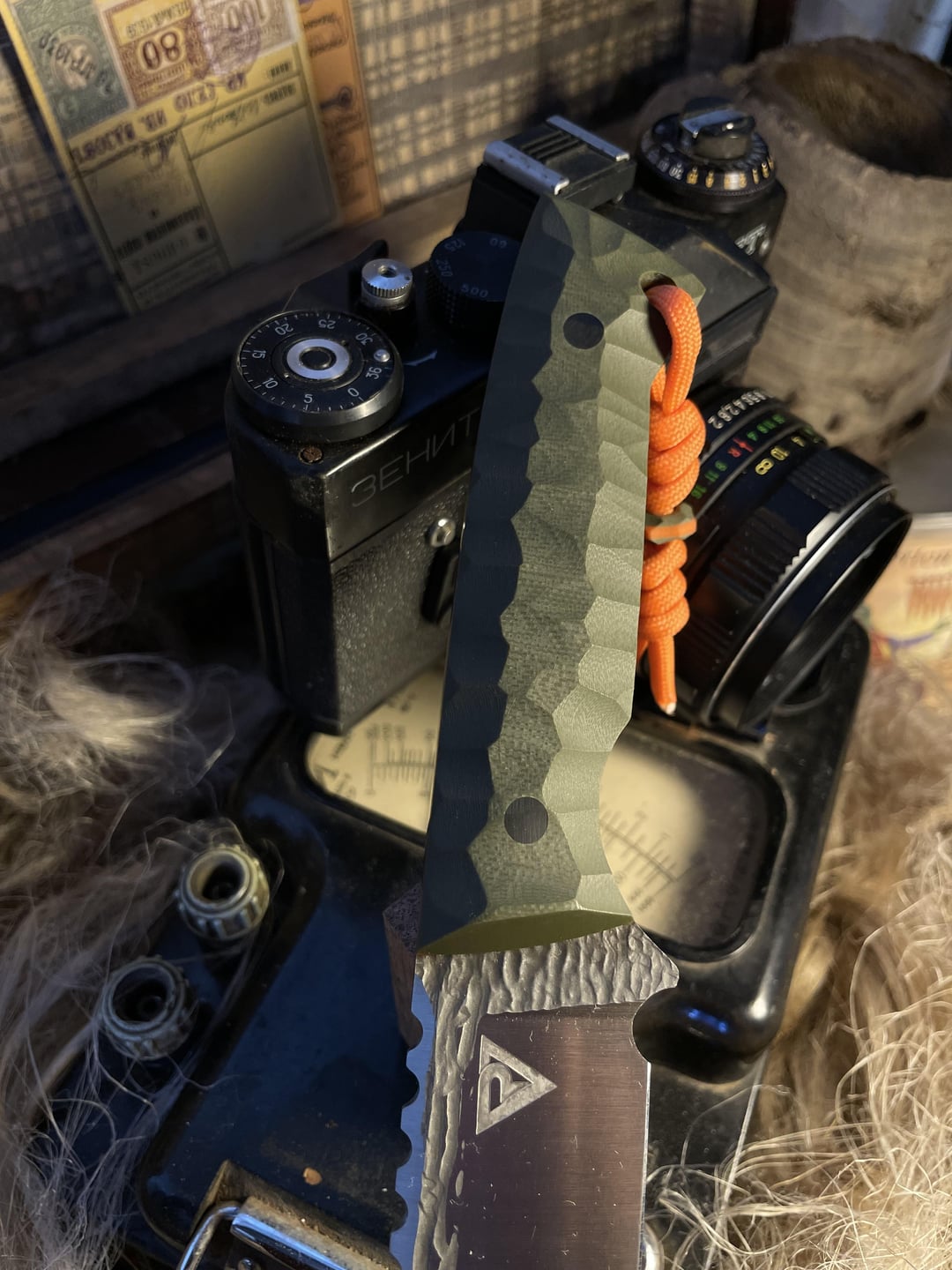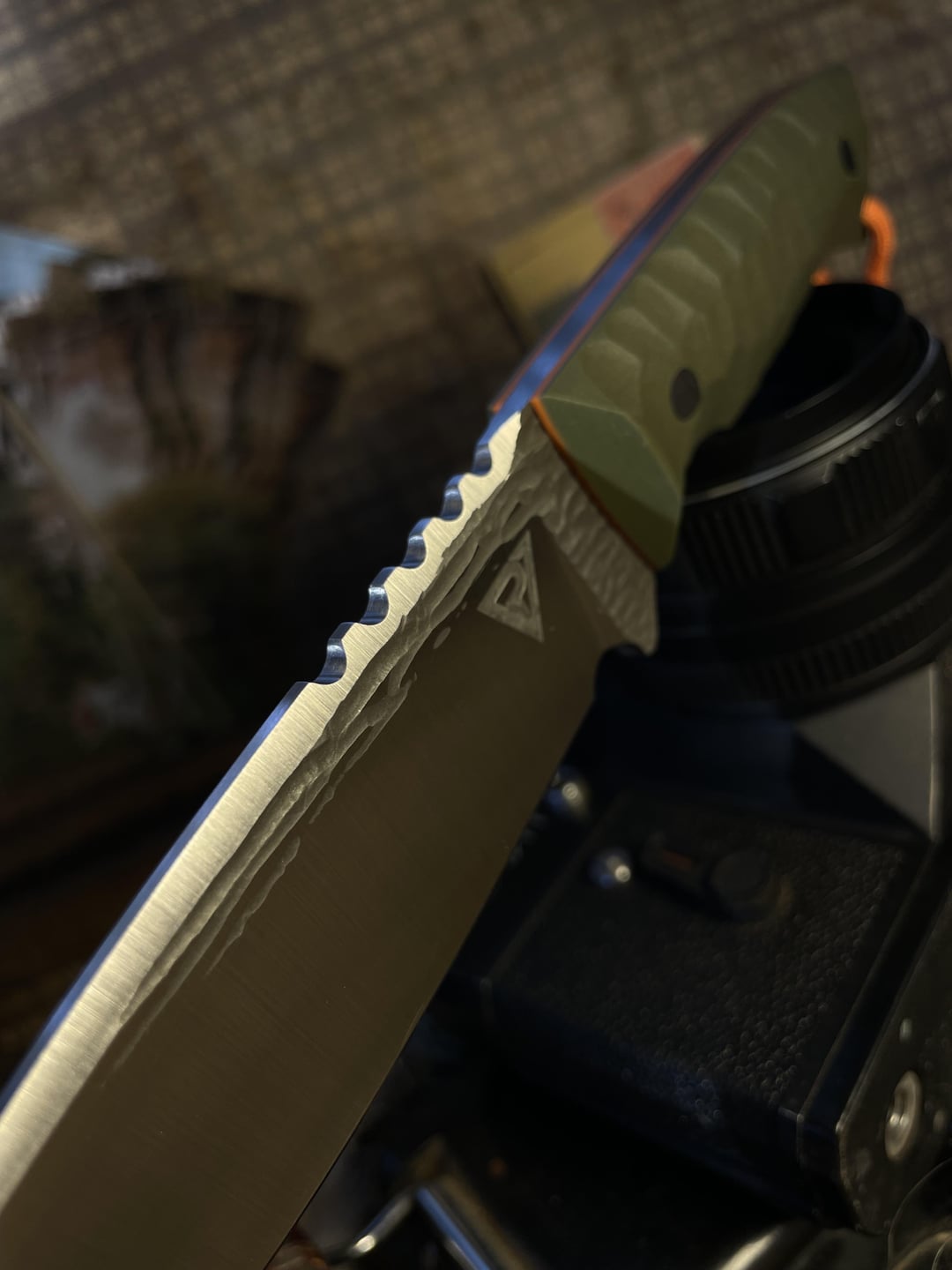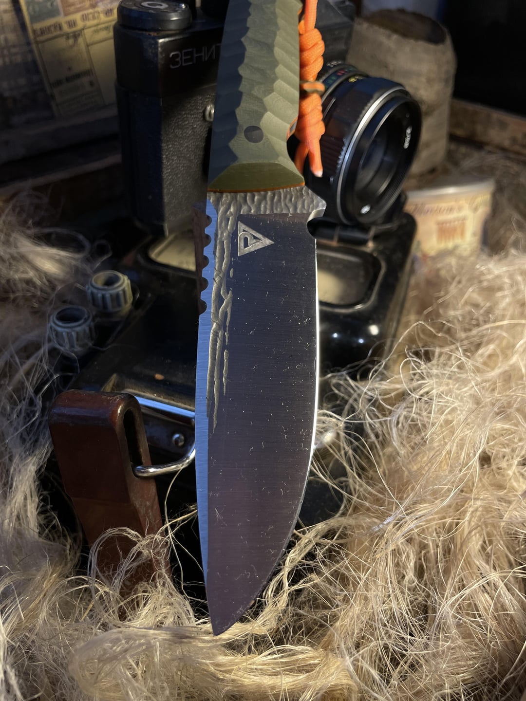My latest work #24. Sandvik 14C28N at 61 HRC with cryo, two toned satin finish, OD green G10 scales and kydex sheath. Tell me what did you guys think of this?