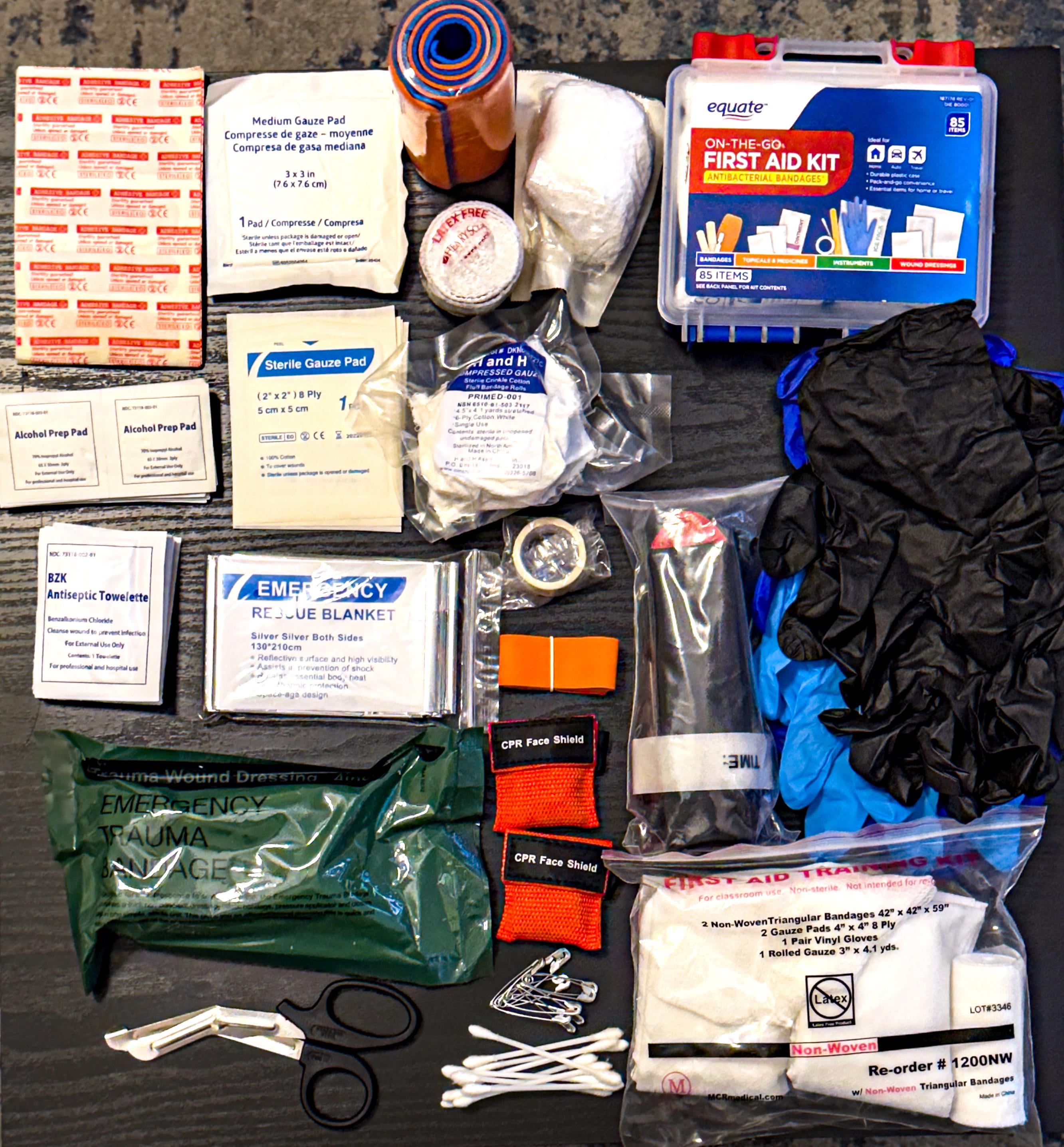 Lots of gauze. No vented chest seal. Maybe more bleed stuff. Take a Stop the Bleed course? Maybe some anti-septic, z-fold, compressed gauaze.
