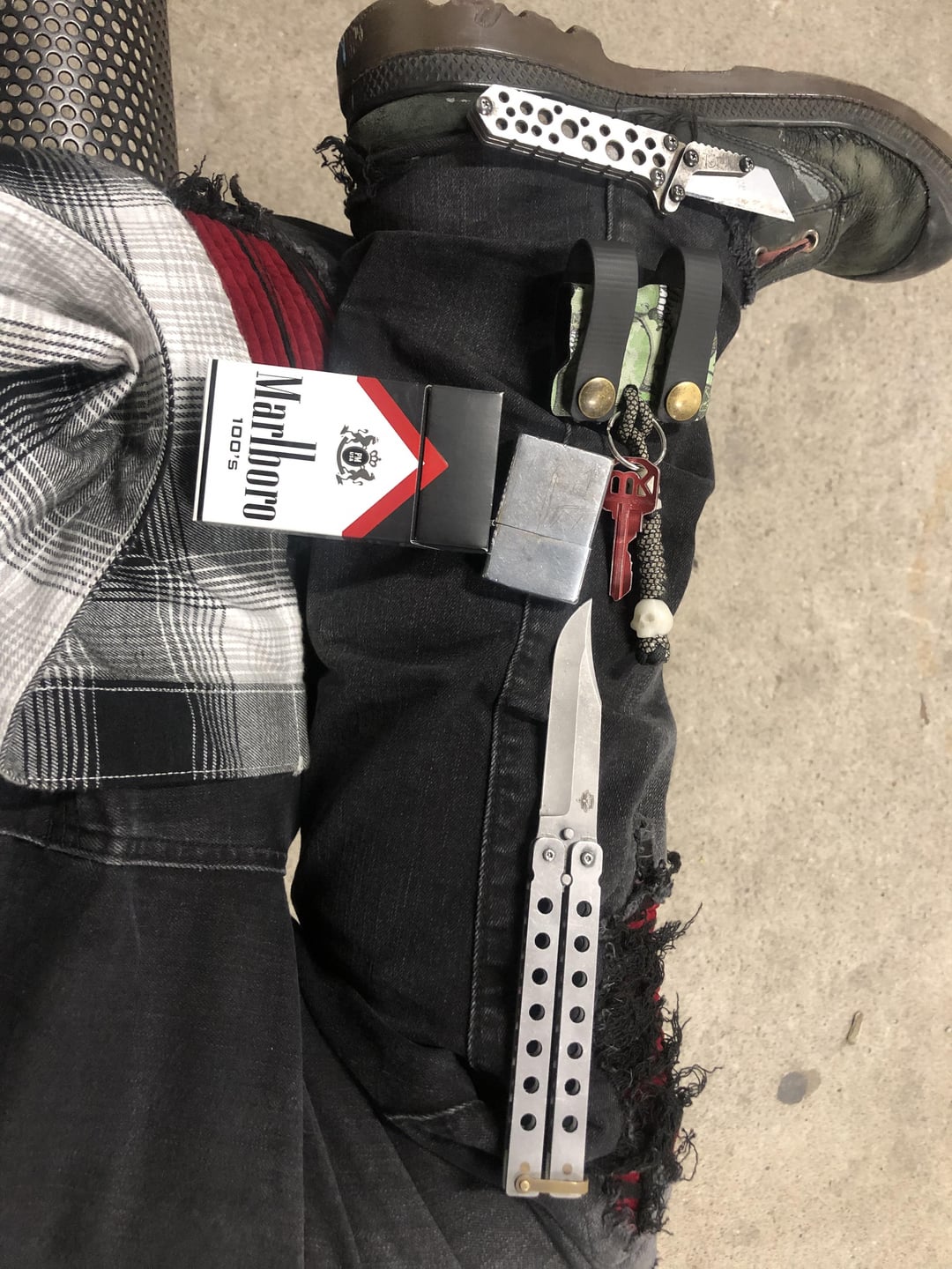 Atropos american worker teale designs fixed blade box cutter with a glowing 3d printed skull lanyard my house key then zippo and cigs