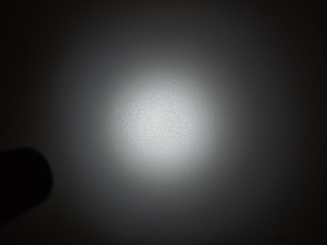 One area where I was curious about is how the beam pattern would look like. The Lumintop Apollo V2 uses a similar shallow orange peel for it’s 4 emitters, and that produces a pretty funky beam that is akin to projecting a flower on the wall. But this light somehow manages to produce a pretty clean beam with only a slight hint of a square boundary line in the spill area (likely from the center emitter)