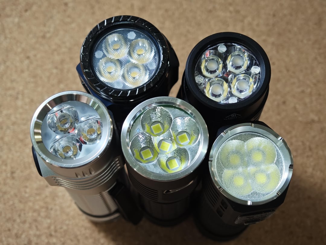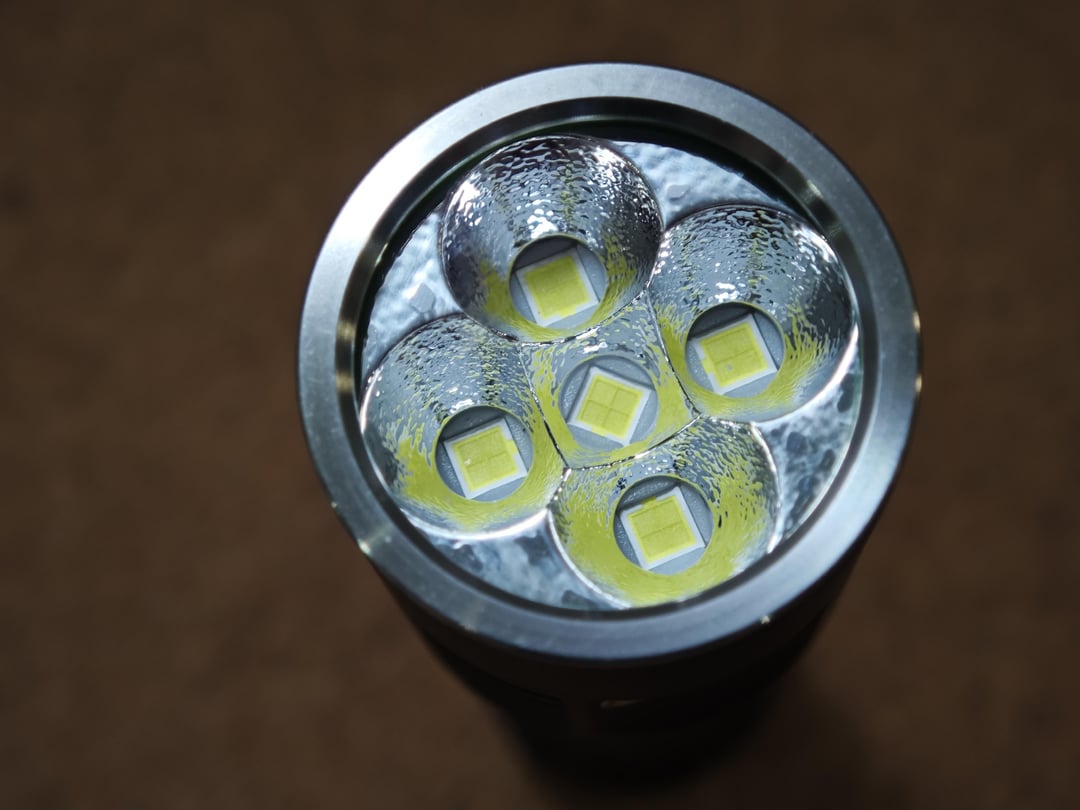 While I don’t have any measuring equipment, visually this light really does seem to be the brightest out of my multi-emitter lights on turbo. On the CCT and tint, while color temp is pretty blue, it doesn’t seem to have any green tint at all when compared with the Nichia 519As in the TS26S. If you’re looking for higher CRI, they do offer a 4700k R9080 version but I can’t find any information on what emitter this is using.