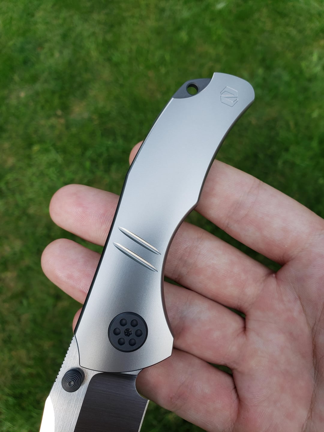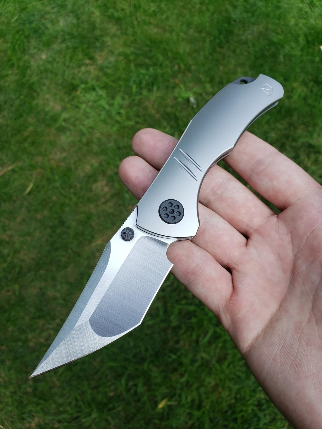 Here is another Null knives Grace that I vapor blasted. I think this thing turned out gorgeous with the black zirconium accents. I left the finish on the zirconium alone and I think it contrasts nicely against the bright blasted scales!