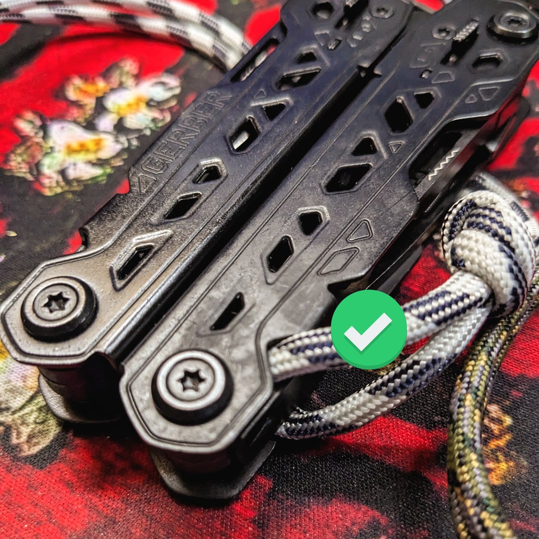 * Remove the lanyard from the lanyard hole provided by Gerber. * Re-attach the lanyard to the handle holes near the pliers (narrow end of tool). * In tools with smaller holes (Suspension / Bear Grylls), tie on some micro cord first, and then tie the lanyard to that. * Result: The lanyard will give you more loss-control when using the pliers. They will not fall as far out of your grip. * Result: The lanyard will not spin around with your tools or get in the way. * Result: The tool will not try to stab you while you retrieve it from a fall when tied to your wrist