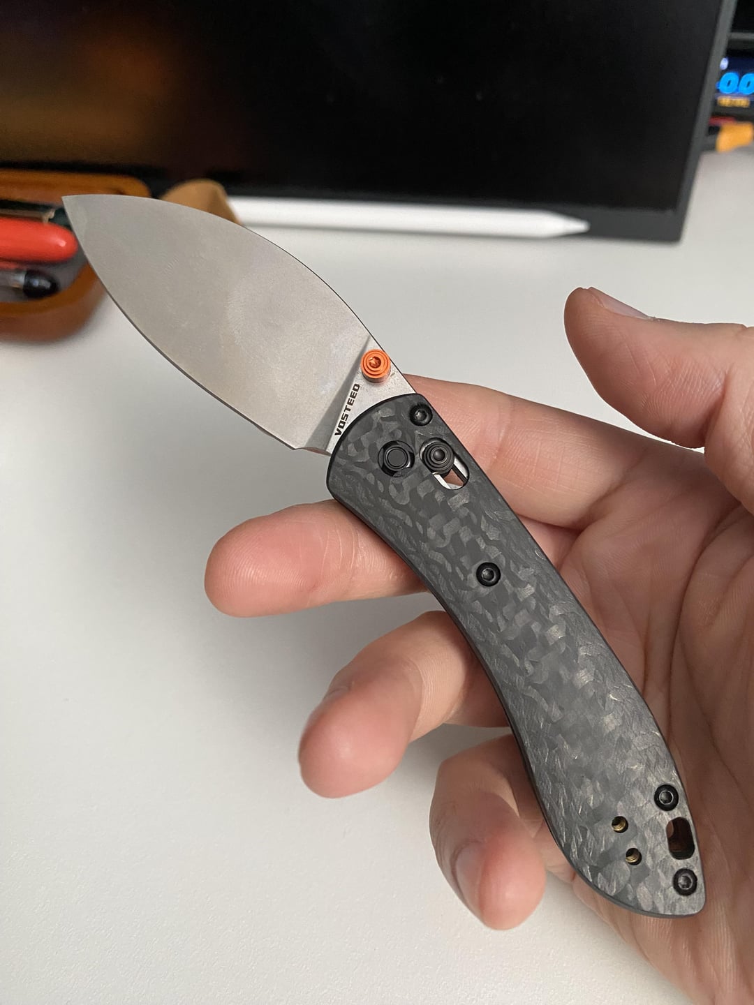 Vosteed Mini Nightshade. Carbon scales, s35vn blade steel. 1.67oz!!