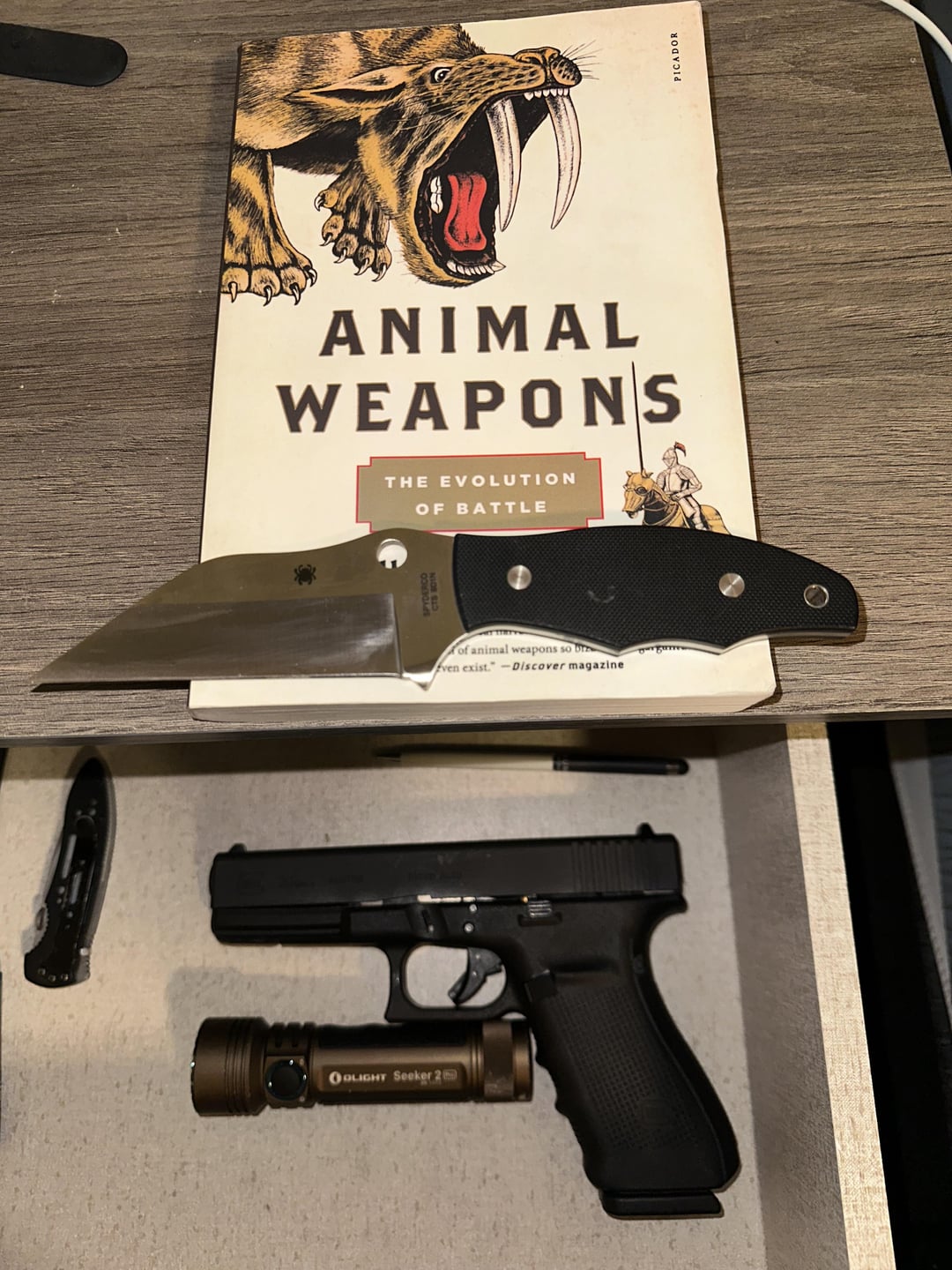 In KNIVES Nightstand knife September 23, 2024 What’s in your bedside table? Anyone else keep a dedicated nightstand knife/knives?by kingt1313 KnifeKnives Prev Post Current top 10 🇺🇸!! It’s amazing how the collection changes over a couple years! September 23, 2024 Next Post Today’s Carry and you? September 23, 2024 Related Posts What do you guys think? January 16, 2026 Finally caved and picked up a Bark River Bravo 1 January 16, 2026 [NKD] You either love 🐴 🍆, or you don’t. January 16, 2026 1 Comment Hucbald1 1 year ago Is it a good book?Write A CommentYou must be logged in to post a comment.