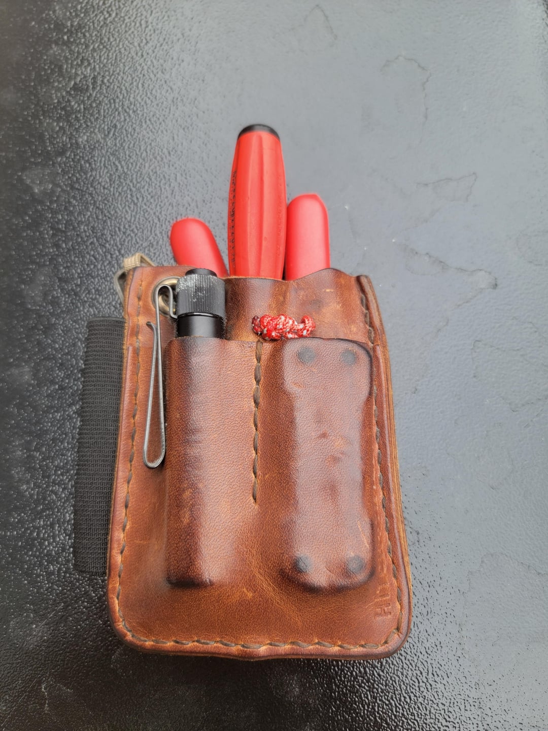 This is my culmination of work edc experience. The PB Swiss screwdriver is my most used tool by far and the organizer, along with a duct tape wrapped straw inside keeps it protected and easily accessible in my pocket. Everything else there is a backup and doesn’t get used frequently but has already saved me time and again when I’ve walked across a sight and need to make a small adjustment or troubleshoot something. This, along with my multitool, another flashlight, and a sharpie that rides in a ToK sheath on my belt and a fastback in my pocket gets me through the day without feeling under equipped or running back to the truck at every issue.