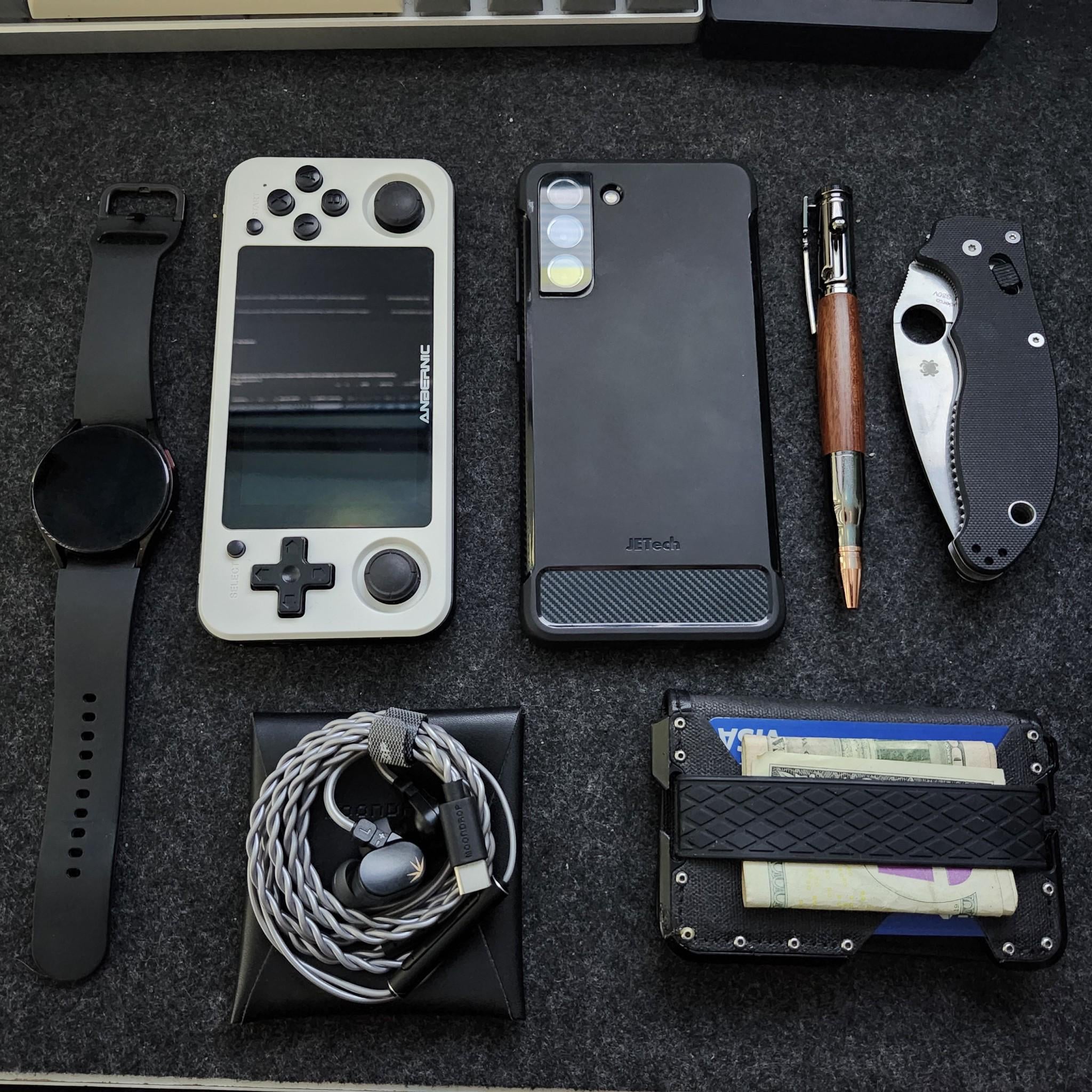 Galaxy Watch 4, Anbernic RG351P (Handheld), Galaxy s21 FE, Spyderco Manix 2 (Knife), Moondrop Chu II (Iem earbuds).