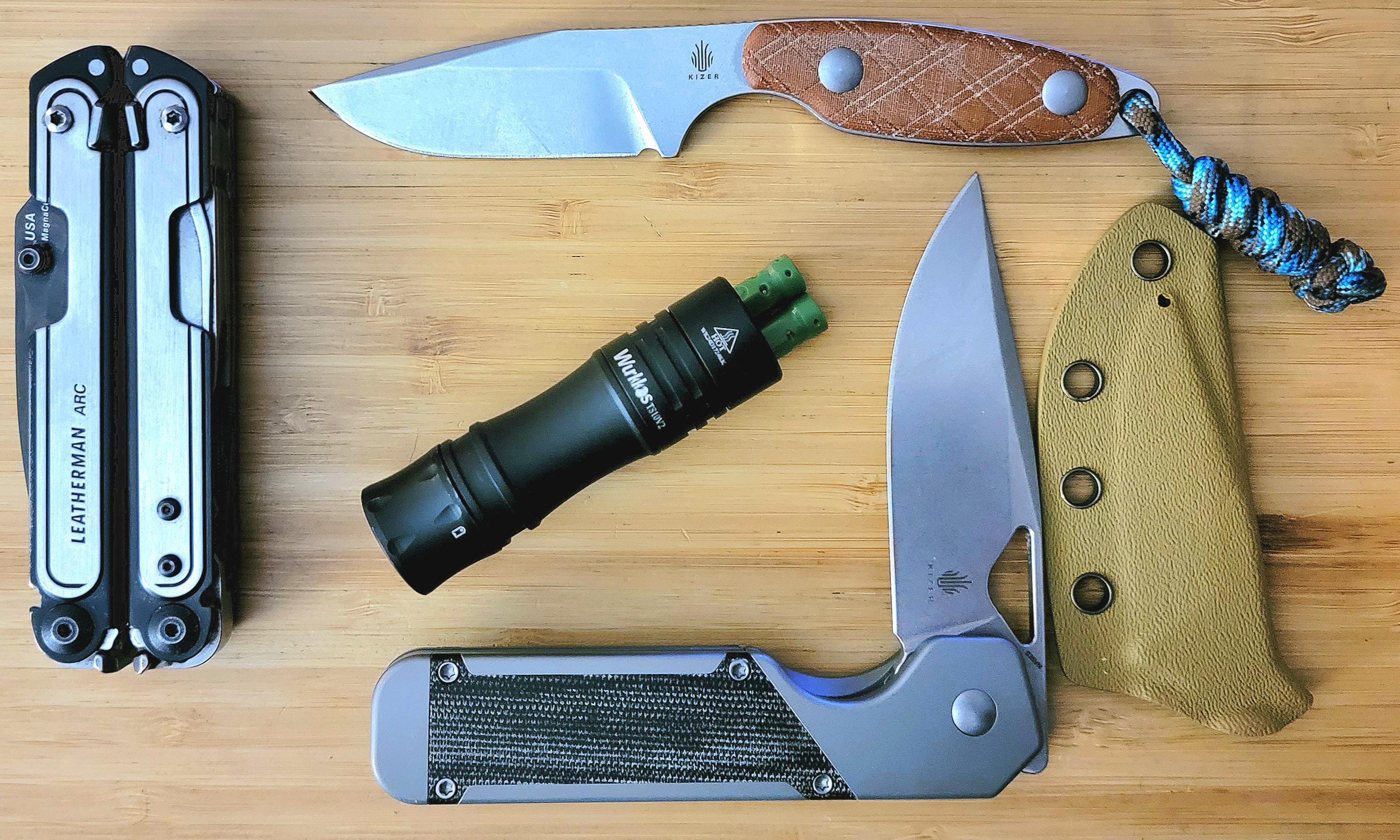 This is my first day carrying the muskrat. It just drops in my pocket. I may get an after market clip later Leatherman arc Wurkkos TS10 V2 Kizer muskrat fixed blade Kizer militaw Stimagz