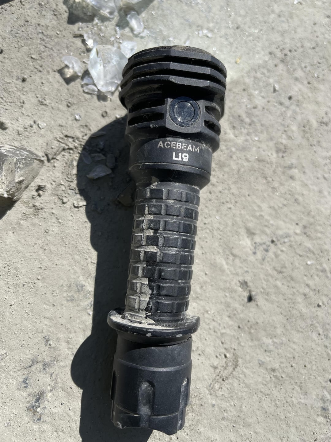 The battery tube was smashed as I was trying to salvage the new 1-2 month old Acebeam battery I just got. I will give the flashlight a proper sand burial.