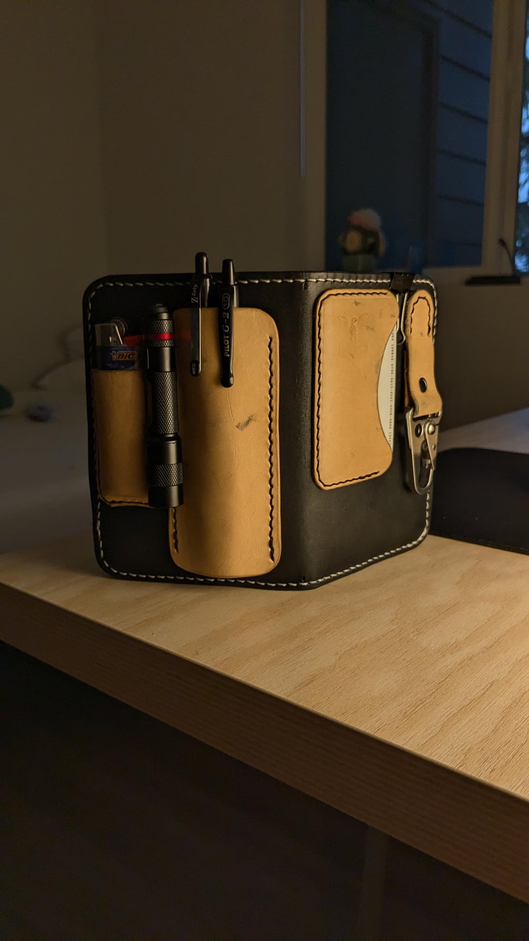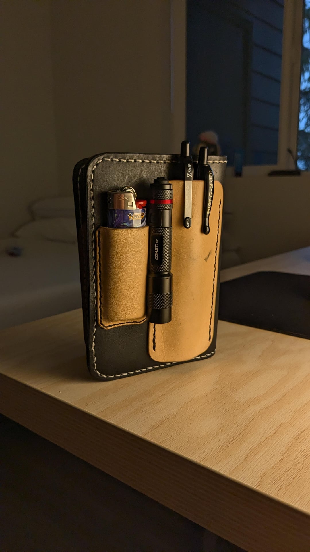 2. COAST G22 flashlight; BIC lighter; Pilot G2 / Zgrip Ball point; The notebook is made by myself.