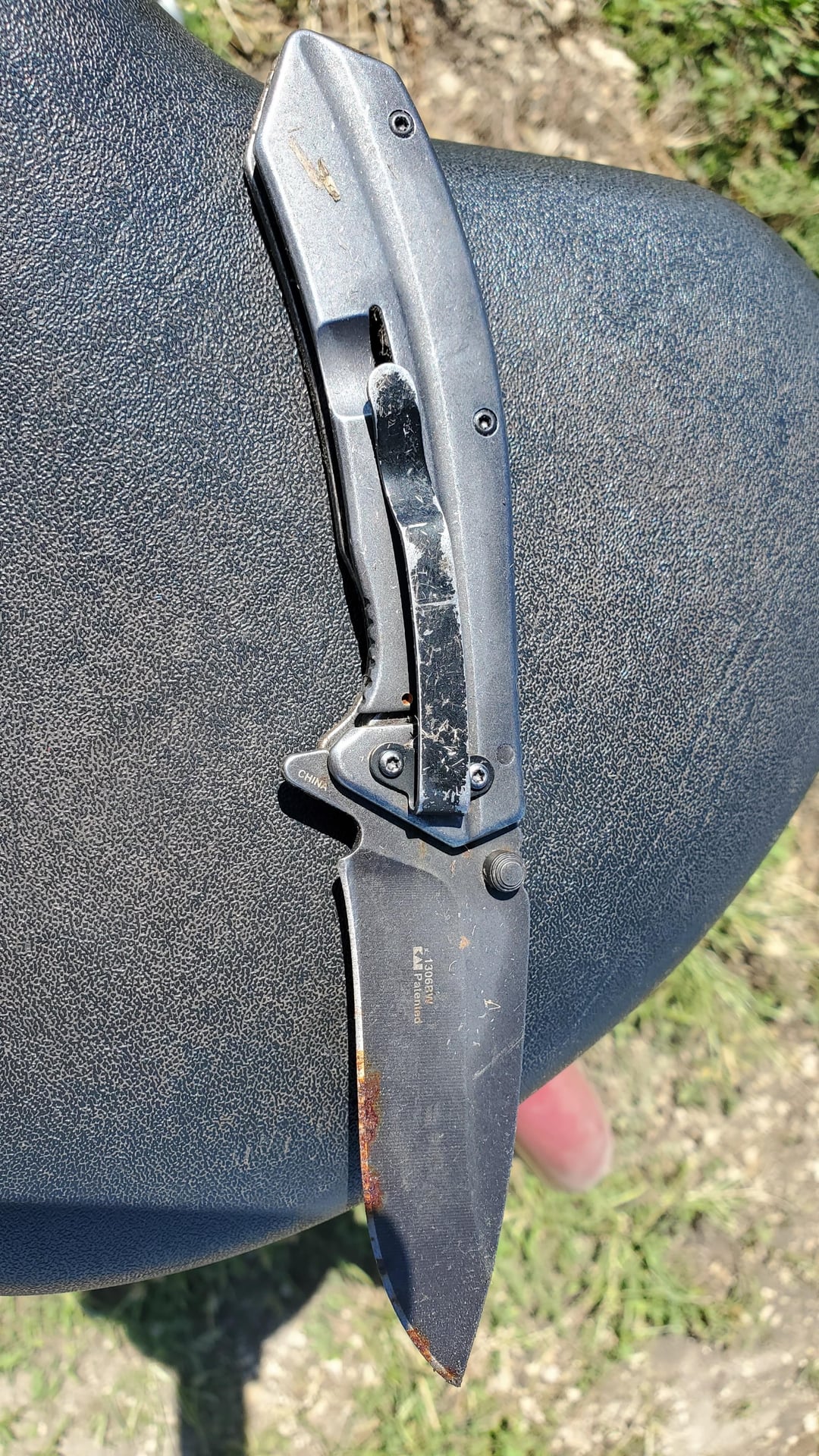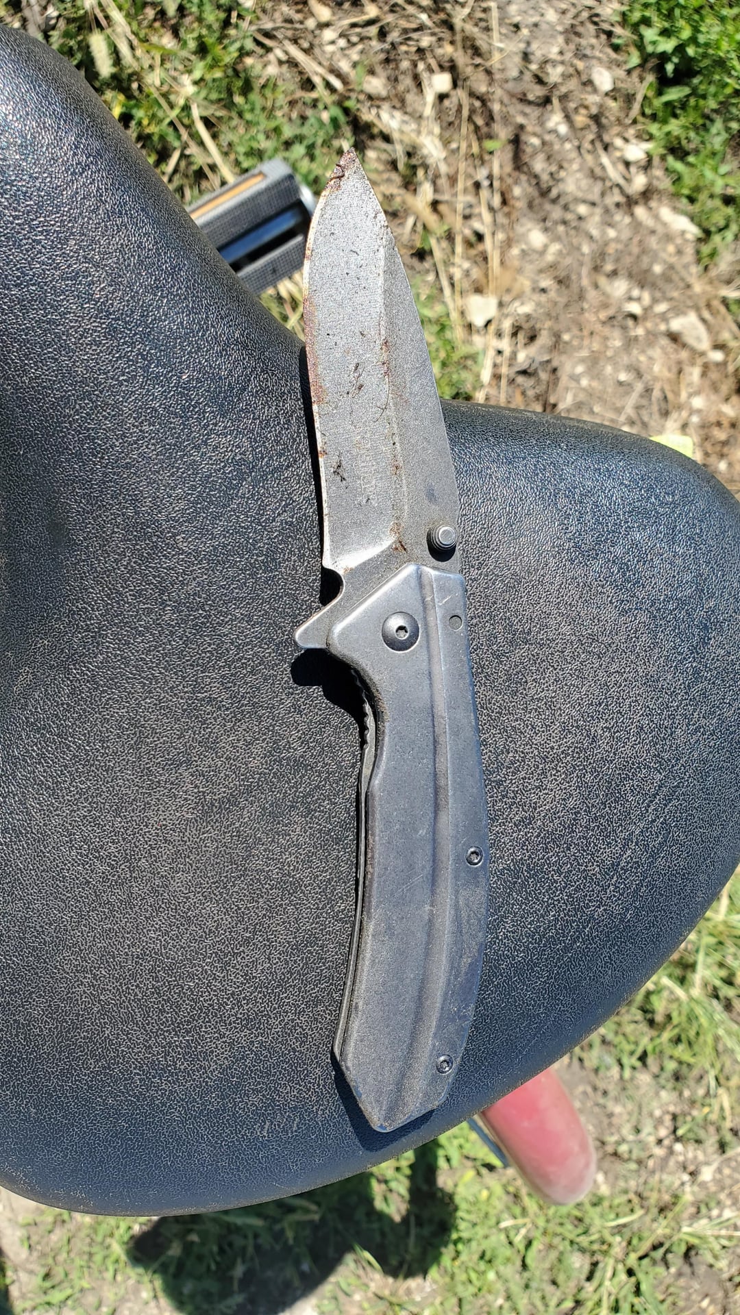 Found knife day FKD. Looks like it got snagged when someone slid off the bails.