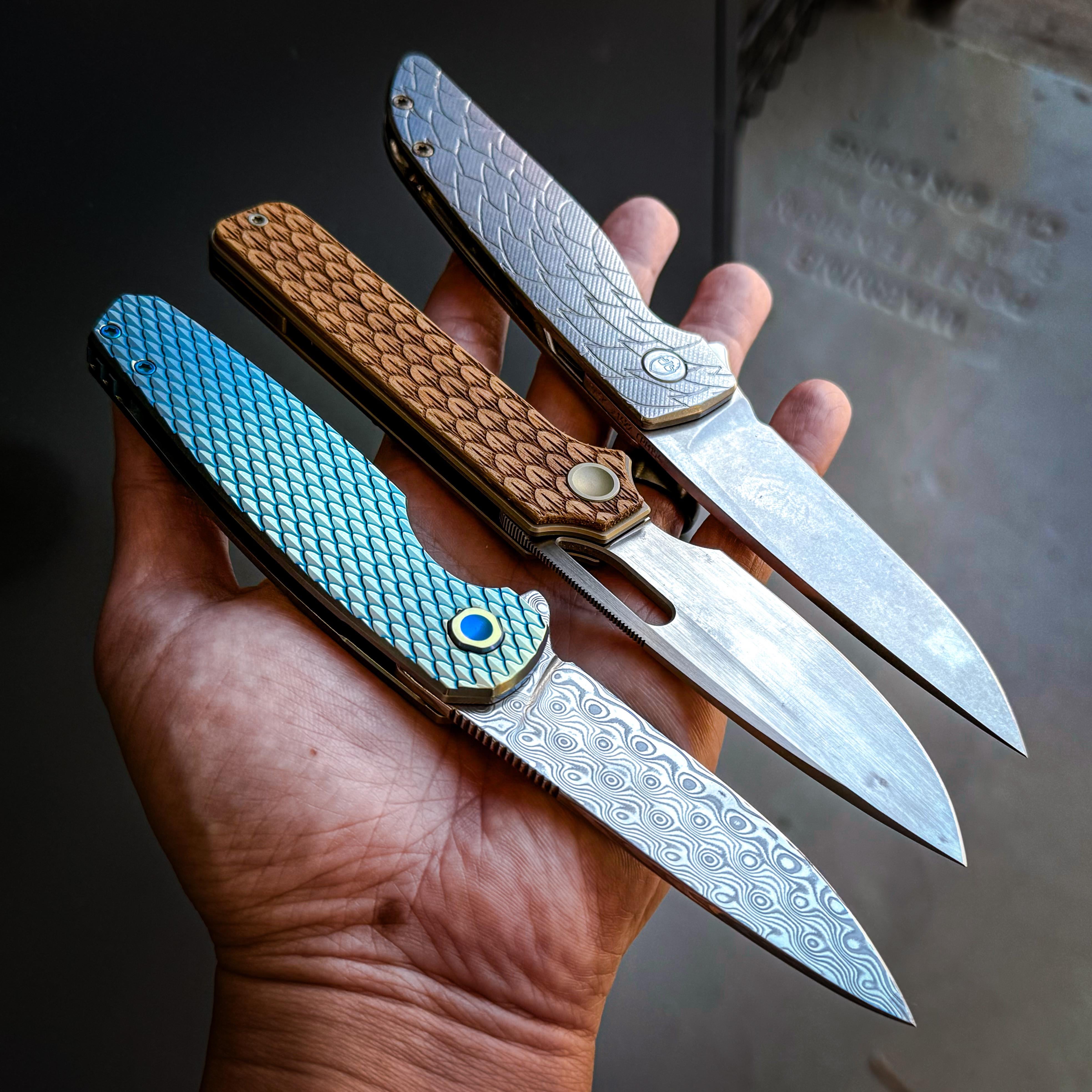 🔪 Grimsmo Rask # 1422 Dragon Scales, CPM 154, micro milled dragonscale ti, bronze accents