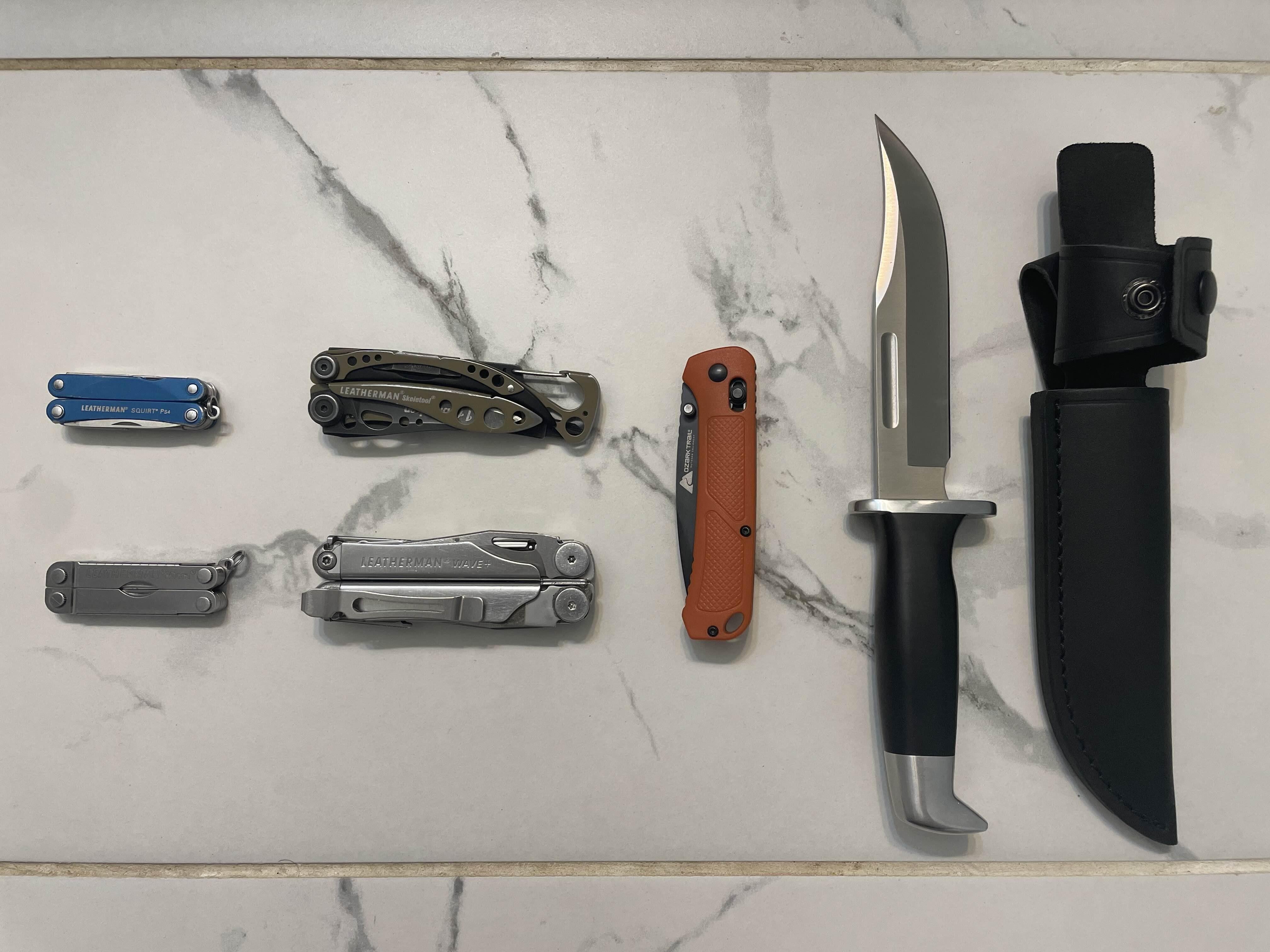 A collection of budget knives and used Leathermans I got for great prices