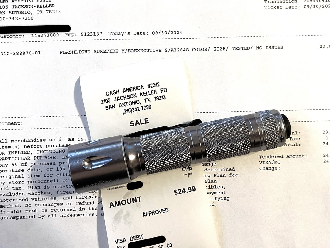 In Flashlight Today’s $25 pawn shop find: Surefire E2 Executive September 30, 2024 Today’s $25 pawn shop find: Surefire E2 Executiveby TurdBungle flashFlashlightlight Prev Post I broke the rules September 30, 2024 Next Post Micarta Monday September 30, 2024 Related Posts officially joining the club with these two. January 16, 2026 Foggy January 16, 2026 Follow up to anodizing removal post January 16, 2026 3 Comments sir_yuri 1 year ago That’s a great deal, nice find! calmlikea3omb 1 year ago Nuts. I need to get out and get looking TurdBungle 1 year ago Whoa! Someone on on Ebay asking for $199 for this thingWrite A CommentYou must be logged in to post a comment.