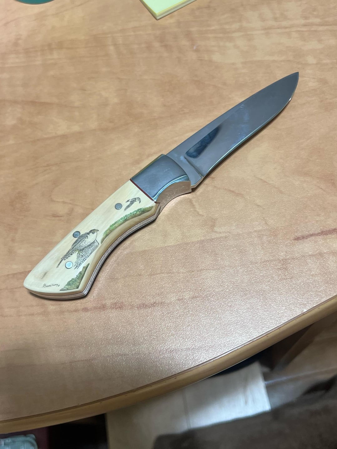 balh1111 1 year ago After a quick Google. It’s a Del Corsi scrimshaw custom, so a one off. E2a with a handle by Gaétan Beauchamp?
