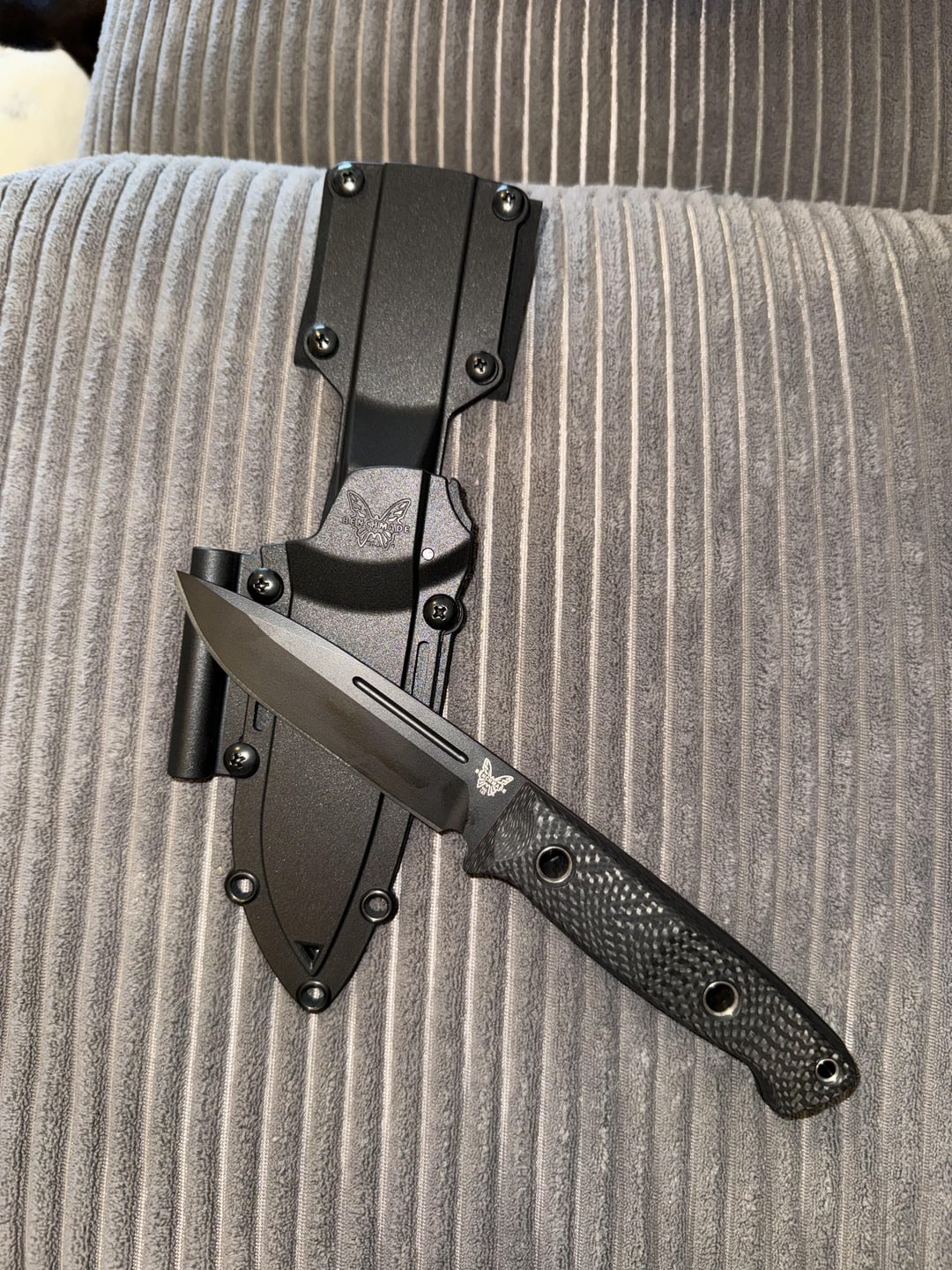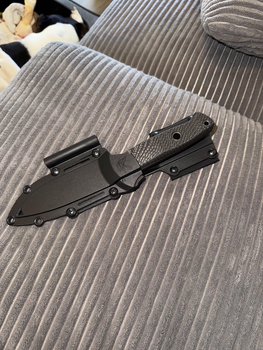 Picked up the new Carbon fiber Bushcrafter. Got a good deal at 350$. Chose this over the ANONIMUS for durability purposes. I still love the look of the ANONIMUS but felt this would be the better option for Bushcraft. Quite a hefty knife and don’t feel like the carbon fiber makes a difference but it does look really good. I’ve heard some people don’t like the grip but for me it feels fine and adds a bit more security.