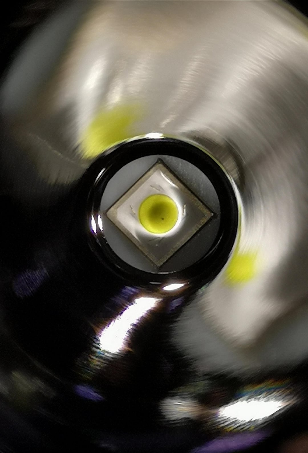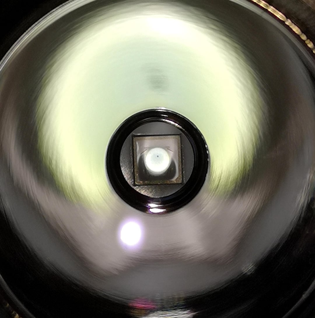 It’s either a burn on the surface of the emitter (most likely) or its a spec of dust, I’ve had it happen before on SBT90.2 light.