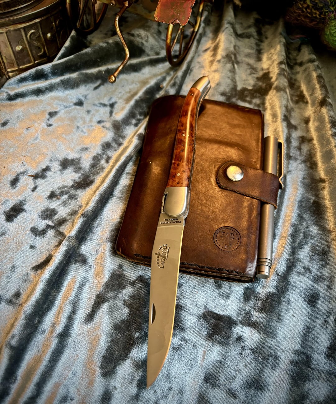In KNIVES First Slippie I’ve purchased in almost 20 years… how’d I do? October 17, 2024 For the curious, it’s a Forge De Laguiole Forged Tradition 12CM in thuya wood burl. I’m no connoisseur of slippies… but this thing just looks and feels RIGHT.by Brainfullablisters KnifeKnife ClubKnives Prev Post SP36 Is the perfect solar watch charger October 17, 2024 Next Post Lost my CRKT minimalist Bowie so ST Leicht it is October 17, 2024 Related Posts NSD April 14, 2026 Duck paracord lanyard bead (brass duck, bronze helmet) April 14, 2026 Saw blade knife April 14, 2026Write A CommentYou must be logged in to post a comment.
