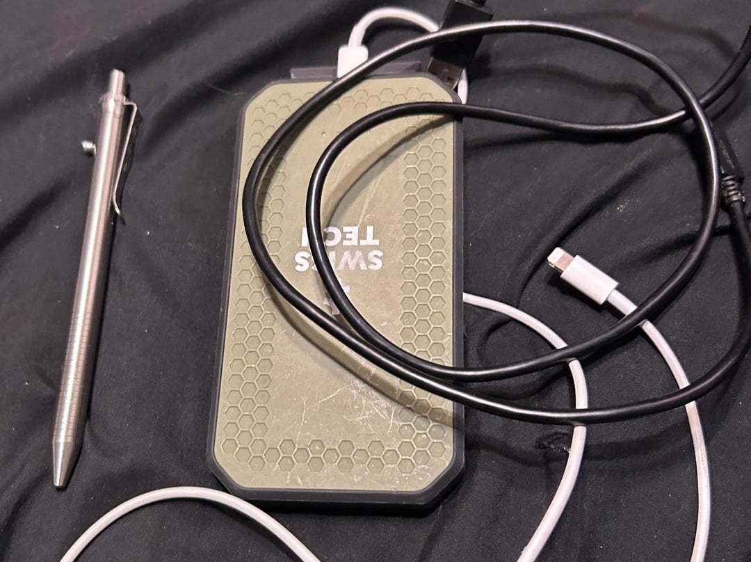 • SwissTech battery bank with a lightning and micro usb cable