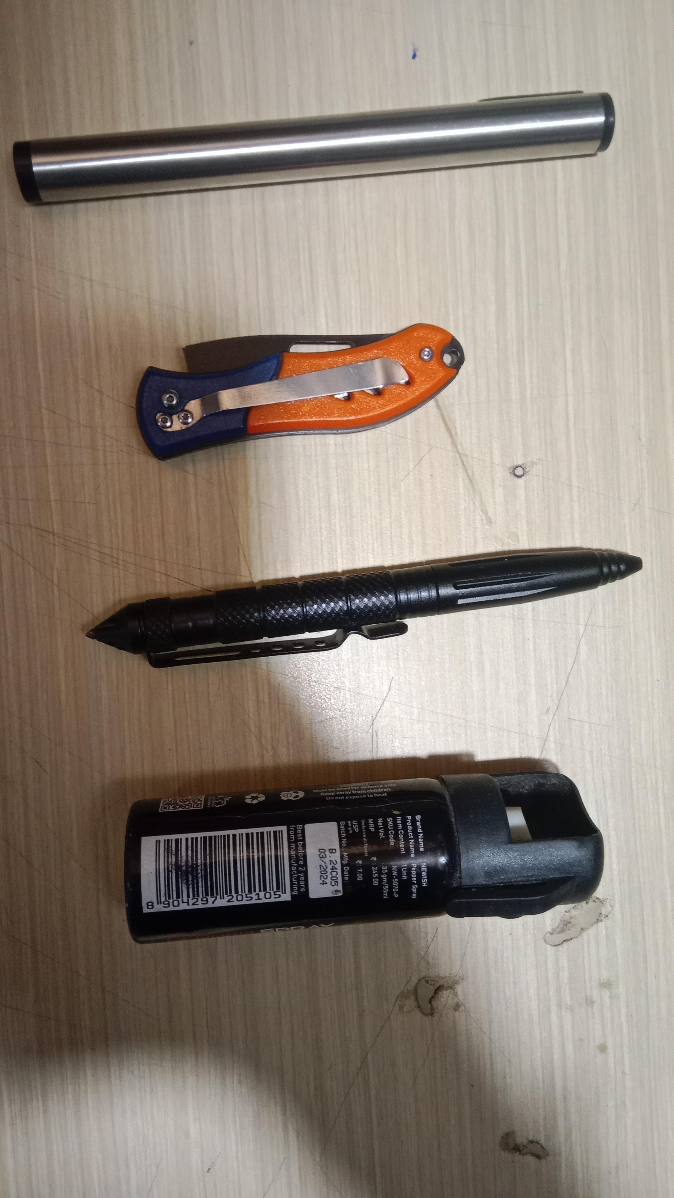 I’ll just say do not remove the pepper spray, it’s an essential self-defence item, and good job carrying it