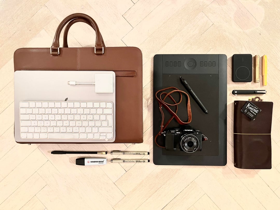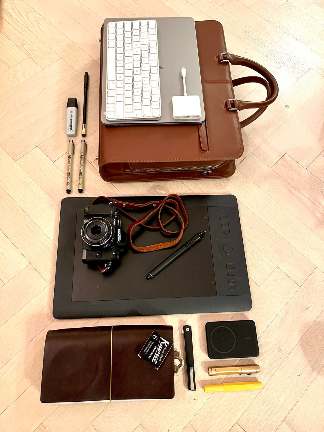 Whatever job you have, it’s a creative one of some kind, because of the graphics tablet and camera. Also the stationary.