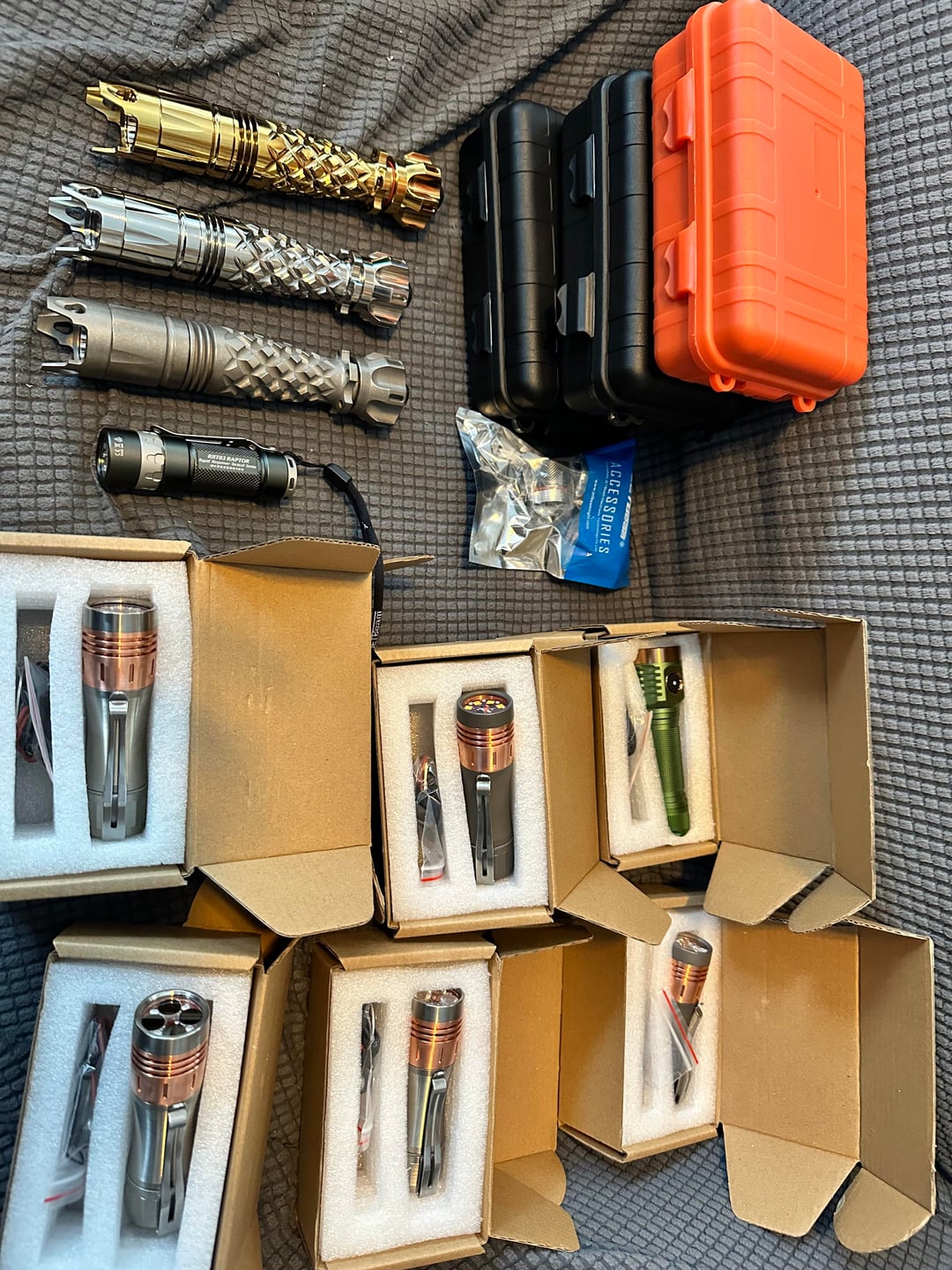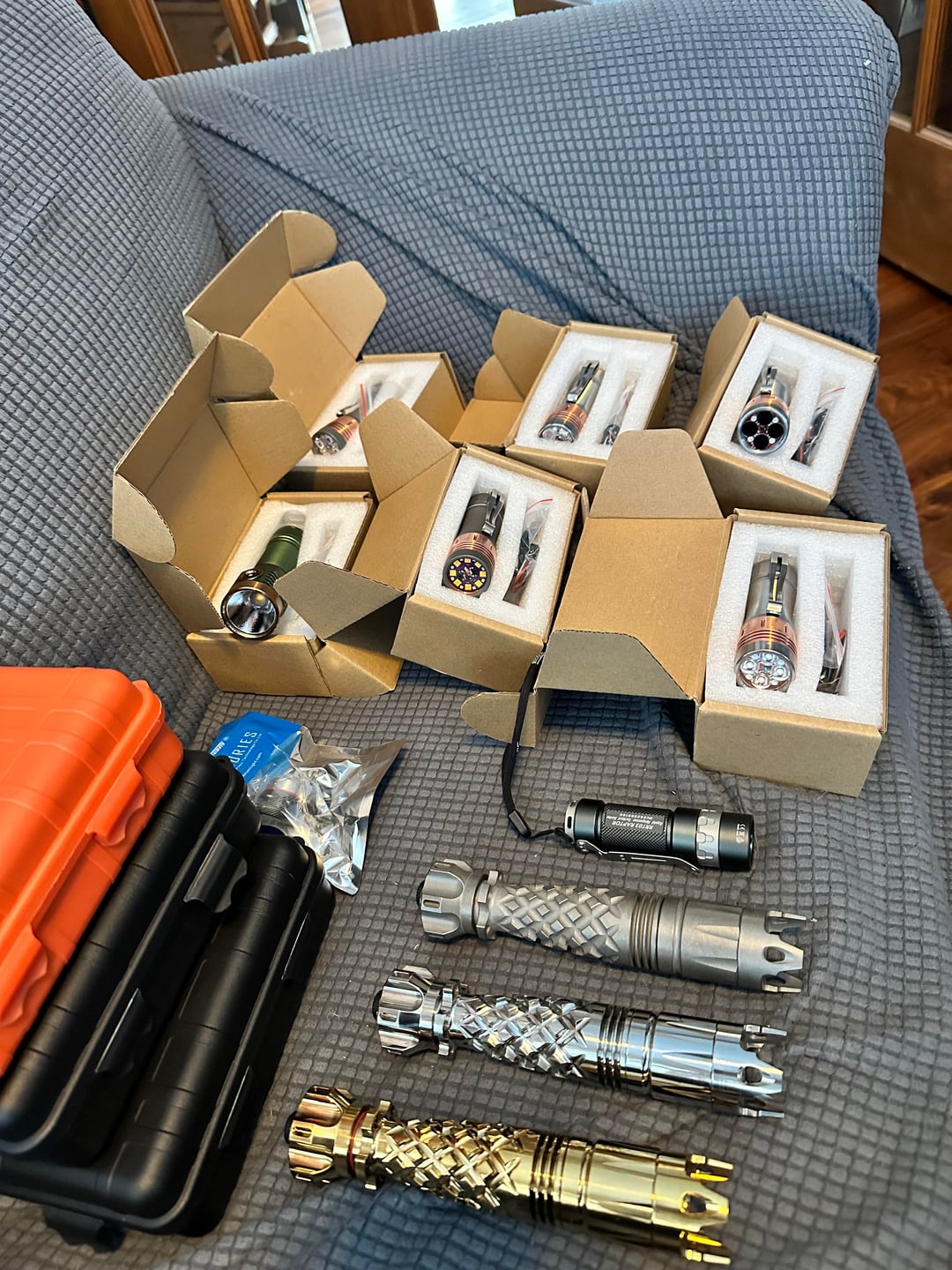 In Flashlight Ti mostly NLD December 1, 2025 Was out of town over the weekend and come back to this. The titanium Hank lights have trits.by Law_sam flashFlashlightlight Prev Post My current collection December 1, 2025 Next Post You’re Looking At The Pro Tech Cambria 2 Winner From BladeHQ December 1, 2025 Related Posts Hank D4K Central Quad Mule Build! January 15, 2026 Alternative to Orion flares? January 15, 2026 Convoy shipping to austria, europe, delivered to local carrier in netherlands? January 15, 2026 2 Comments Alternative_Spite_11 1 month ago The top ones are those crazy expensive Jetbeams right? L2 maybe? Law_sam 1 month ago The gold Ti and the raw Ti are sst40s and the polished one is LEP. Yeah they are Jetbeams as well as the RRT03 Nichia with red green and blue.Write A CommentYou must be logged in to post a comment.