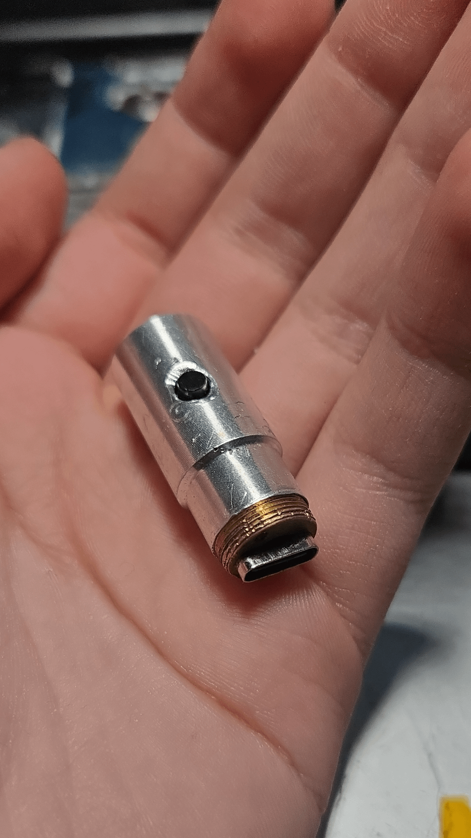 I dont know if there's a better sub for this, but i put this together late at night, its pretty cool, and its only 1¼ inches in length and ½ inch wide. The lumen output is about 150 lumens if not higher, which still isn't much, but for this small of a flashlight is pretty good I think. Let me know if there is anything smaller so I can beat it. Also this is continuous, I know you can easily make something this small and many times brighter, but only for a couple seconds, thats not what I'm trying to make.